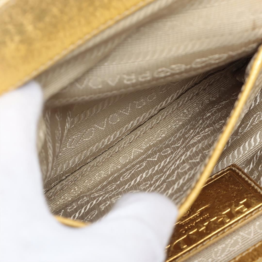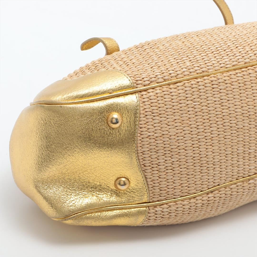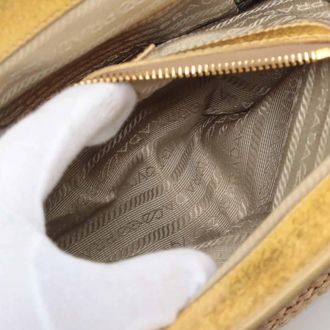 Designed with beige woven straw and gold metallic leather, Prada Dome satchel bag features gold-tone hardware, the interior is well-lined with beige logo jacquard, two woven leather and chain-link handles, as well as the logo detailing at front, snap top