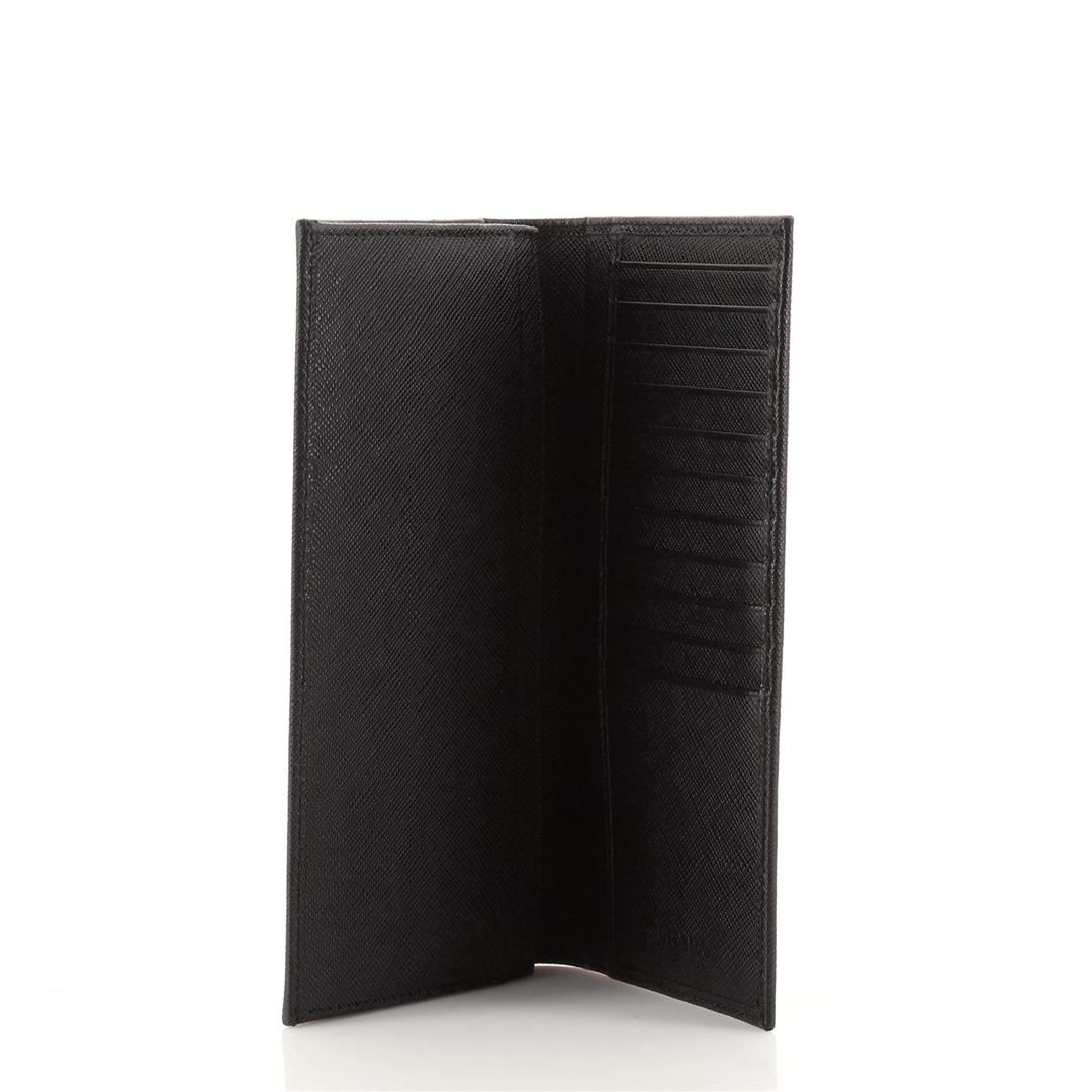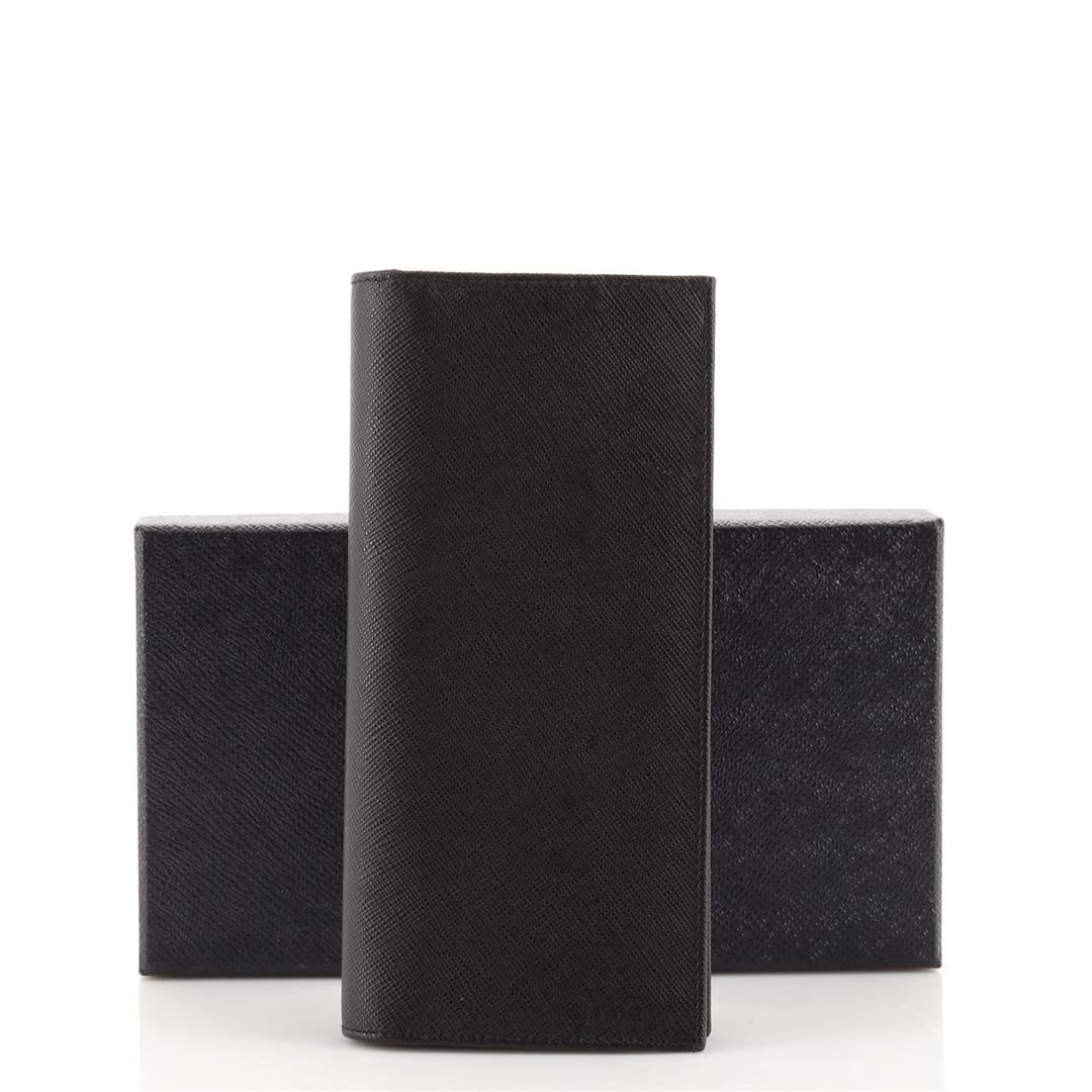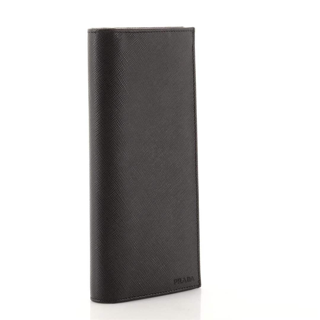 Prada Bifold Wallet Saffiano Leather Long. Small scuff on exterior, minor marks in interior pocket, scratches on hardware.