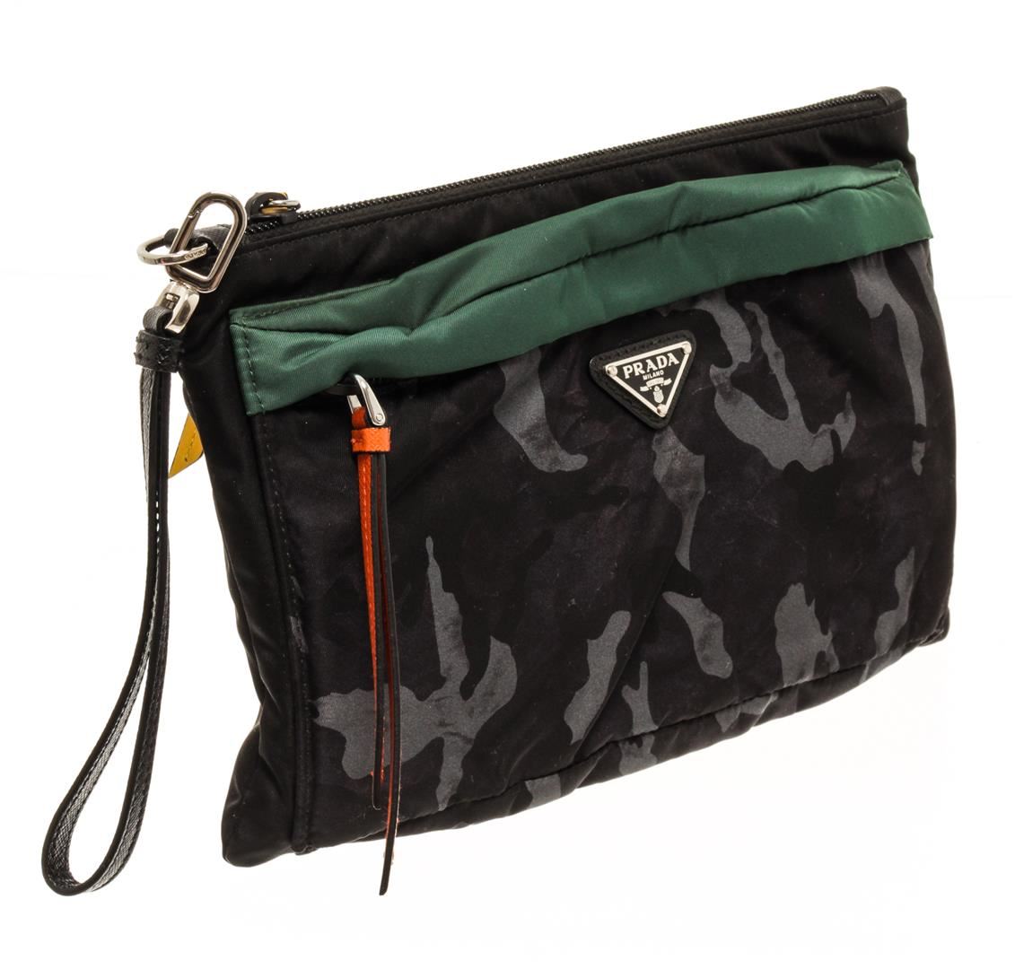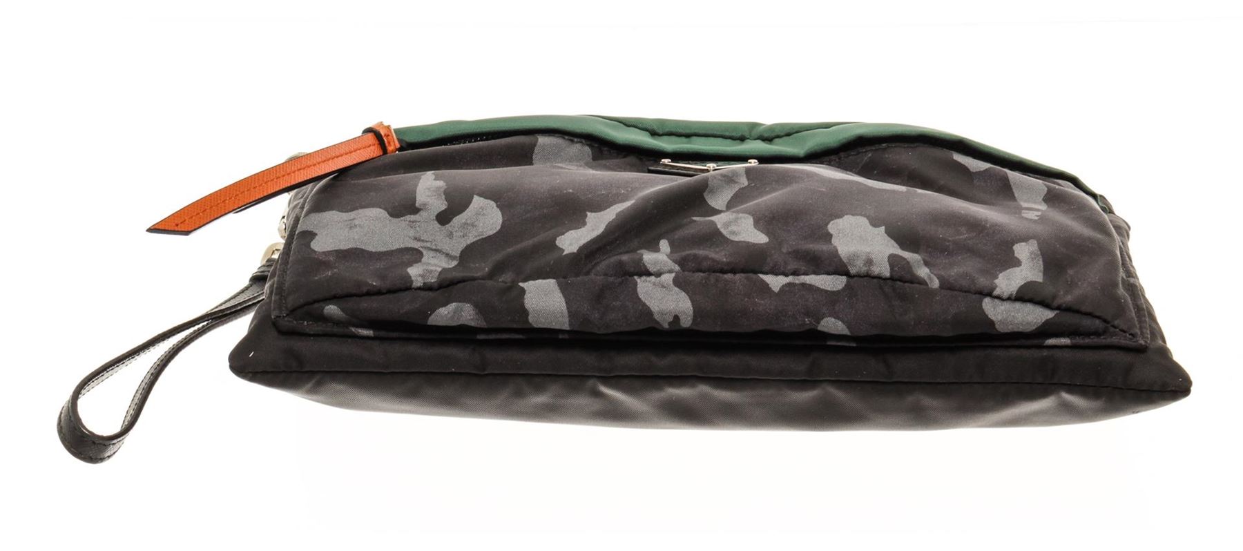 Prada Black, Gray, Green Nylon Camouflage Zip Clutch Bag. All available information is listed in the description and shown in the photos. prada black, gray, green nylon camouflage zip clutch bag 10.5"W x 6.5"H x 1"D / 26.67 x 16.51 x 2.54 CM