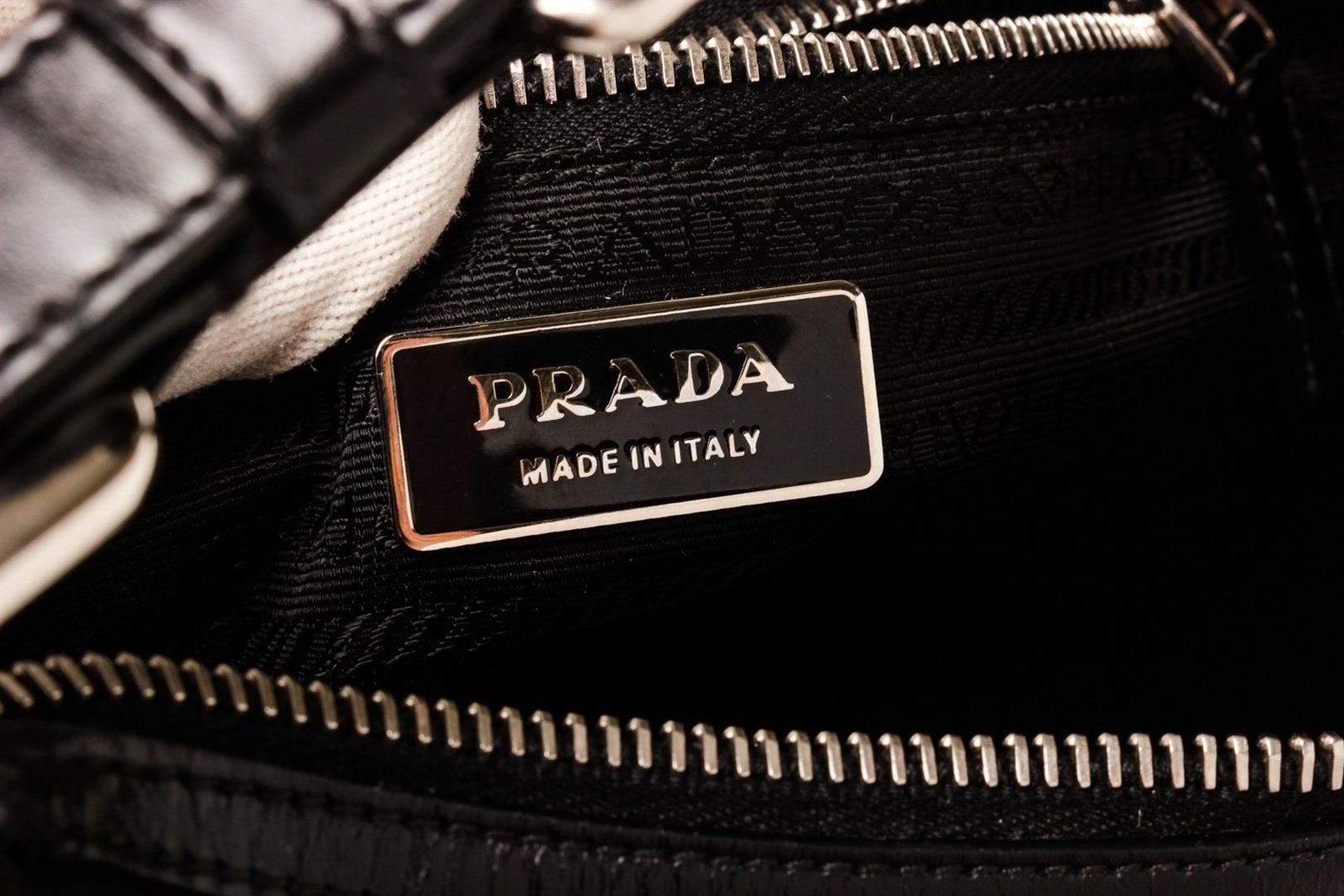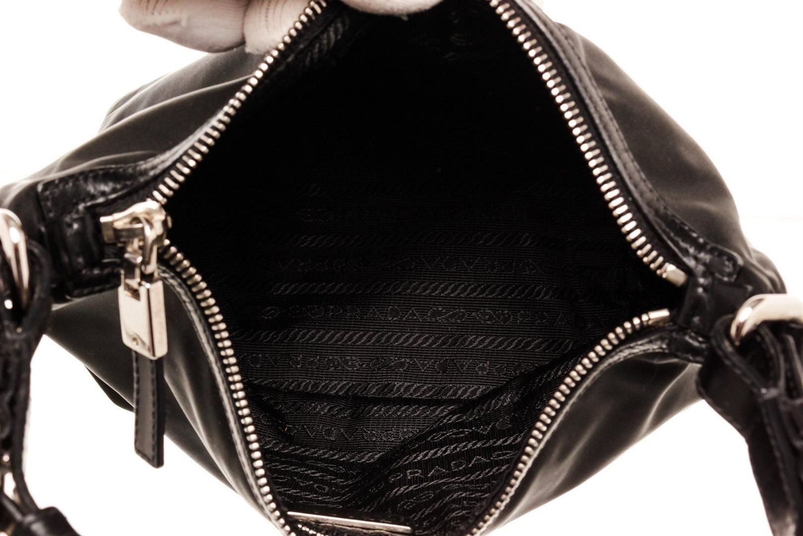 Prada Black Nylon Tesuto Shoulder Bag with material nylon, gold-tone hardware, interior slip pocket, shoulder strap and zipper closure.