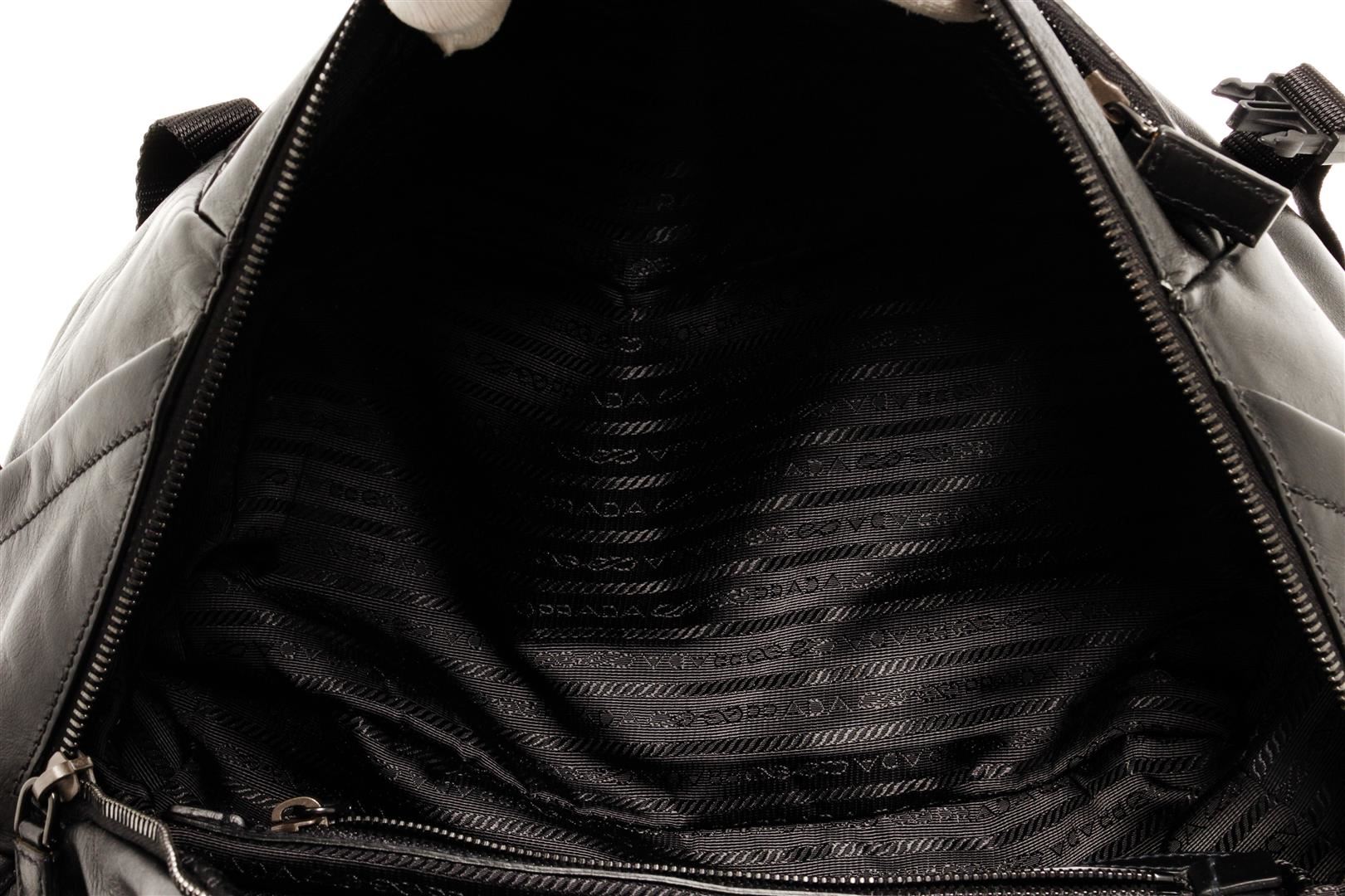 One Prada Black Padded Chain Flap Bag. Item is sold AS-IS. All available information is listed in the description and shown in the photo. Prada Black Padded Chain Flap Bag features silver-tone hardware, with adjustable black leather strap and zip closure. Height 6.5", Width 7.5", Depth 4", Strap Drop 22