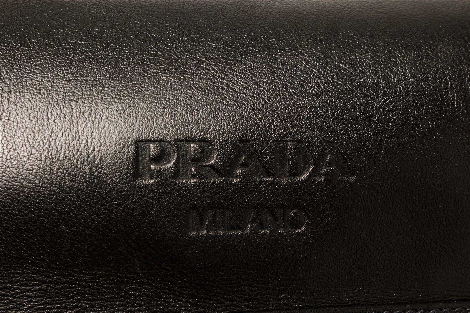 One Prada Black Padded Chain Flap Bag. Item is sold AS-IS. All available information is listed in the description and shown in the photo. Prada Black Padded Chain Flap Bag features silver-tone hardware, with adjustable black leather strap and zip closure. Height 6.5", Width 7.5", Depth 4", Strap Drop 22