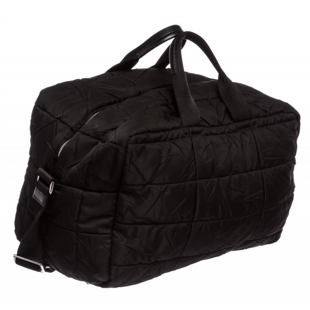 Overall top zipper closure. Interior is fabric lined, large interior with one large side zipper pocket. Dual handles with saffiano leather trim, adjustable shoulder strap