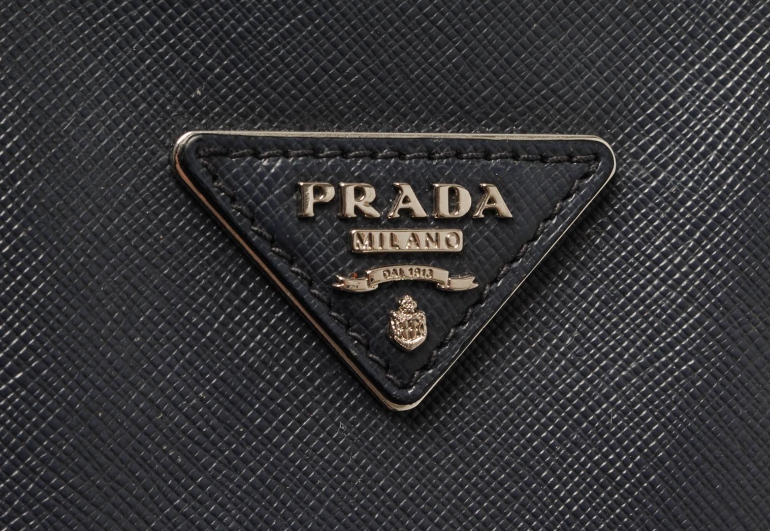 One Prada Black Saffiano 2 Way Tote Bag. Item is sold AS-IS. All available information is listed in the description and shown in the photo. Prada Black Saffiano 2 Way Tote Bag with top handle bag, clochette, fabric lining, interior pockets and silver hardware.
