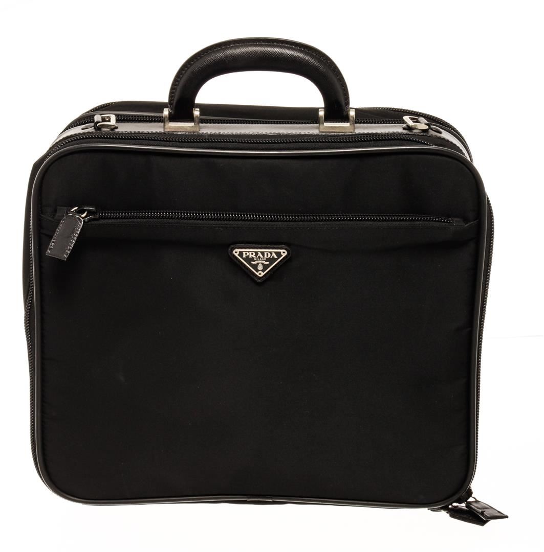 One Prada Black Tessuto and Saffiano Leather Porta Computer Bag. Item is sold AS-IS. All available information is listed in the description and shown in the photo. prada black tessuto and saffiano leather porta computer bag