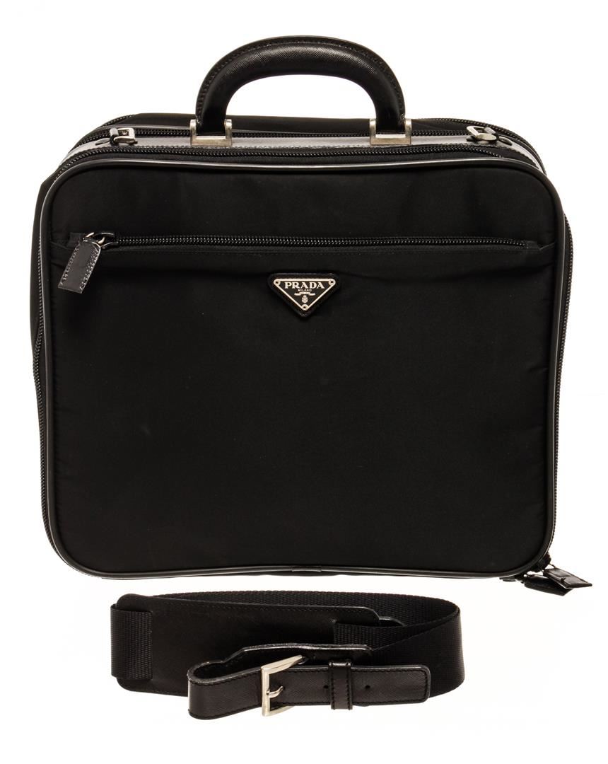 One Prada Black Tessuto and Saffiano Leather Porta Computer Bag. Item is sold AS-IS. All available information is listed in the description and shown in the photo. prada black tessuto and saffiano leather porta computer bag