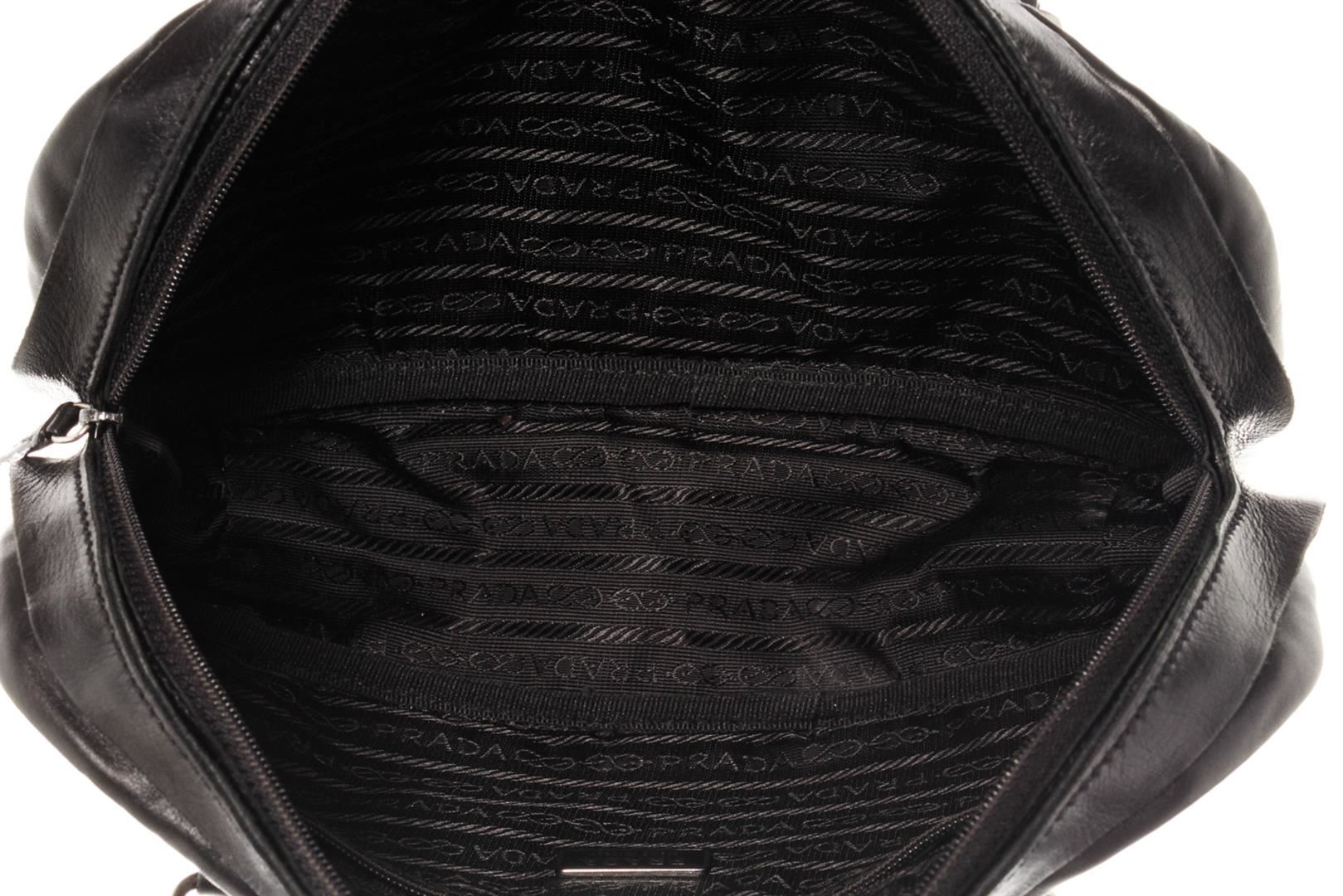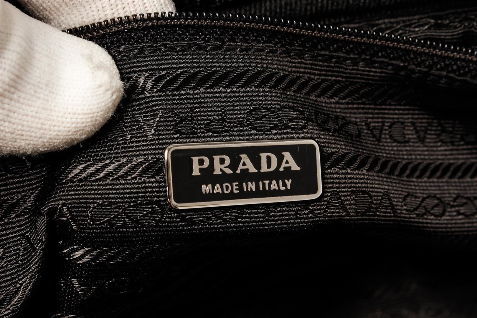 One Prada Black Vitello Daino Leather Mini Satchel Bag. Item is sold AS-IS. All available information is listed in the description and shown in the photo. Black leather Prada Mini satchel bag with silver-tone hardware, dual flat handles, zip closure at top, black logo jacquard lining and one zip pocket inside. 8.4"x5"x4.5", Handle Drop : 2"