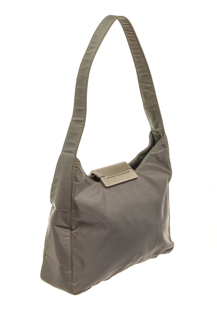 One Prada Brown Nylon One Shoulder Bag. Item is sold AS-IS. All available information is listed in the description and shown in the photo. Prada Brown Nylon One Shoulder Bag with shoulder strap, silver hardware, nylon exterior, fabric lining, interior zipper pockets.