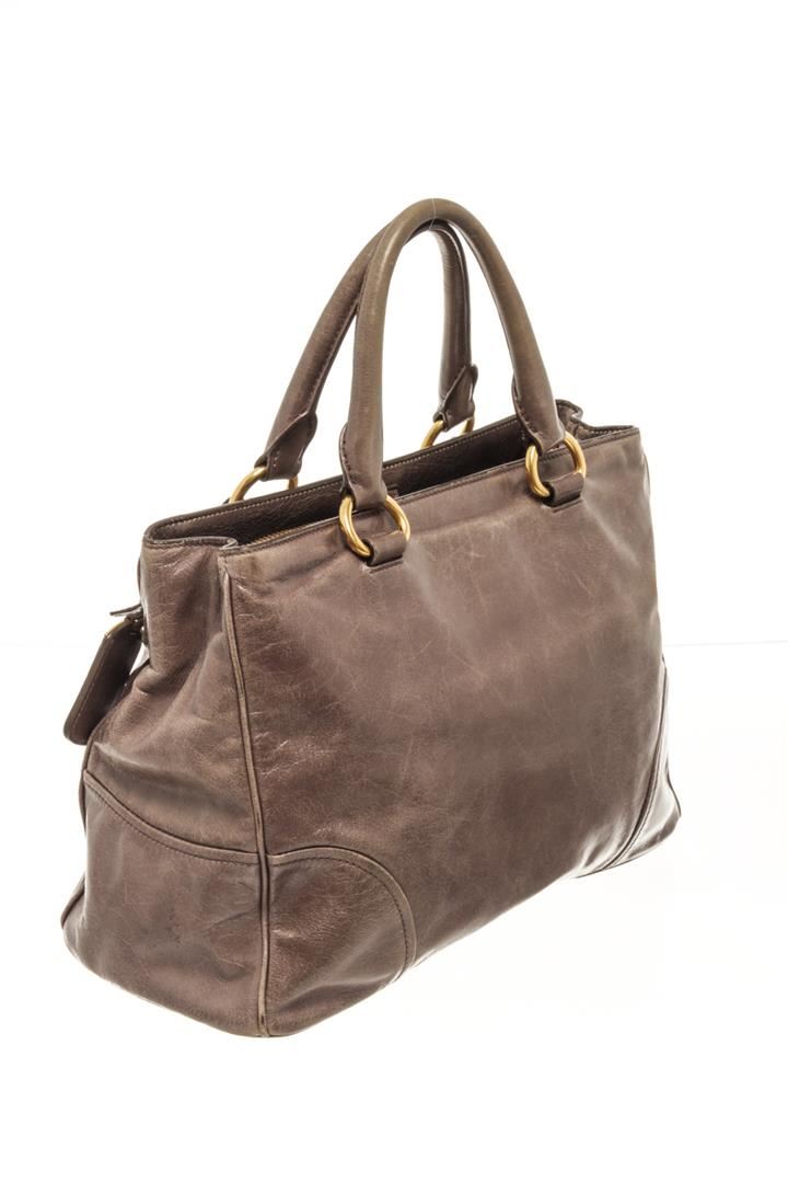 One Prada Brown Shine Leather 2Way Satchel Bag. Item is sold AS-IS. All available information is listed in the description and shown in the photo. Prada Brown Shine Leather 2Way Satchel Bag with top handle, detachable adjustable strap, gold tone hardware, Prada logo on the lining, leather slip pocket, Prada fabric lining, zipper closure. Height: 10.04" Width: 6.5" Depth: 14.18", Handle Drop: / 25.5 x 16.5 x 36 Cm