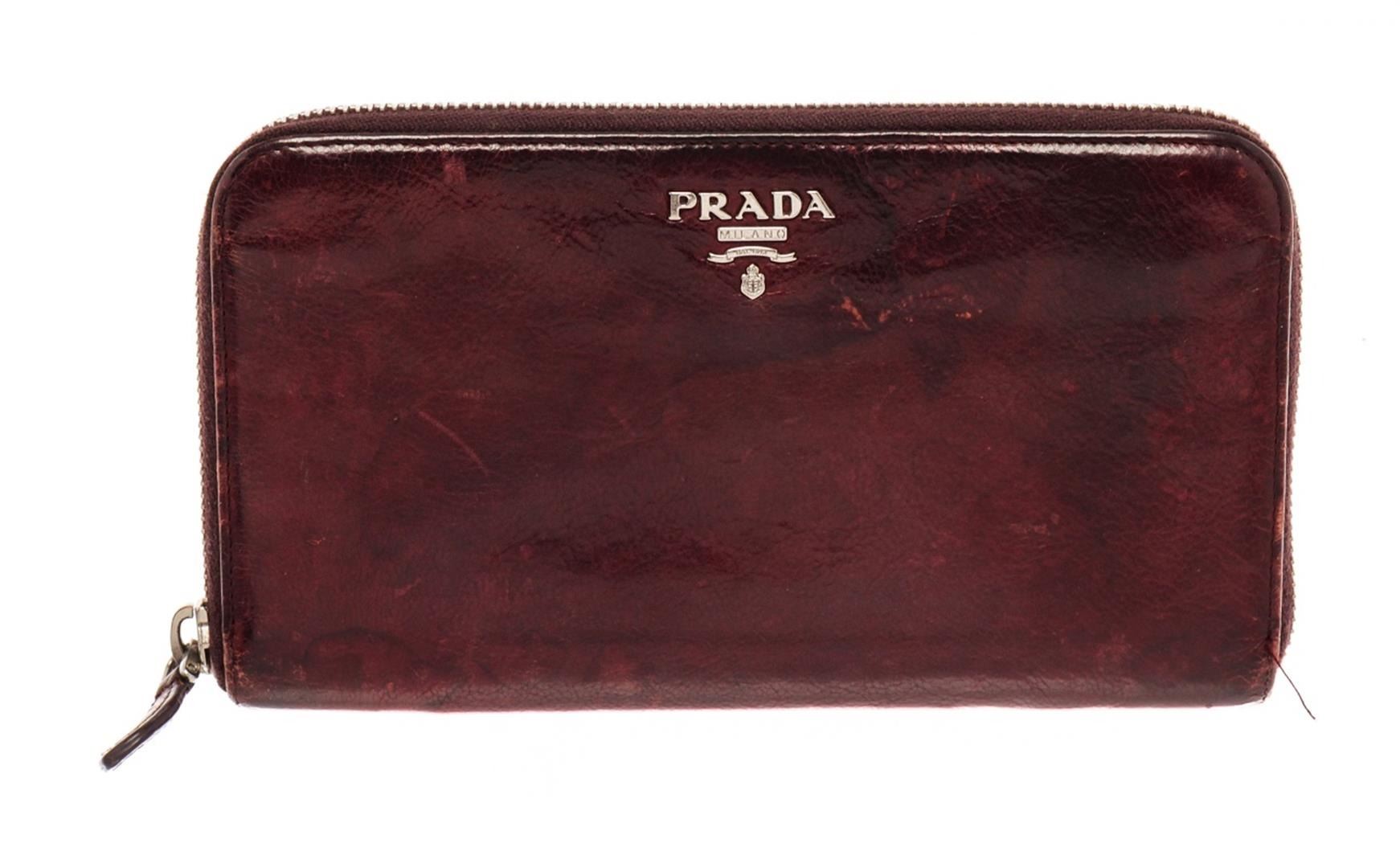 Prada Burgundy Leather Zippy Wallet. All available information is listed in the description and shown in the photos. prada burgundy leather zippy wallet with burgundy leather, gold-tone hardware, leather lining, zip around wallet, interior pockets with card slots, zip closure.