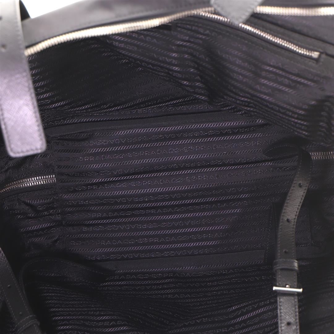 One Prada Convertible Buckle Suitcase Tessuto and Saffiano Leather. Item is sold AS-IS. All available information is listed in the description and shown in the photo. Prada Convertible Buckle Suitcase Tessuto and Saffiano Leather. Creasing, minor wear and marks on exterior, scratches and tarnish on hardware.