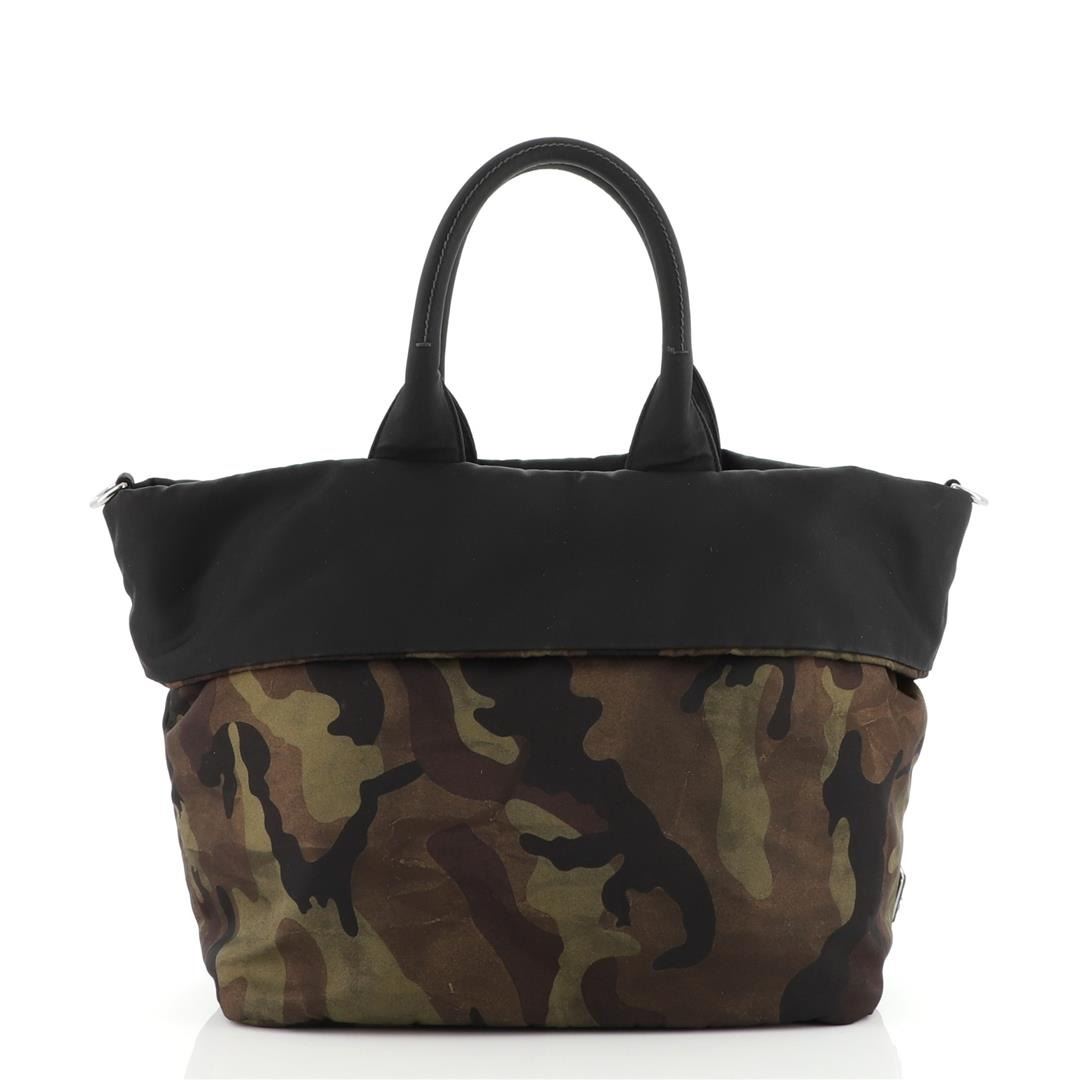 Prada Convertible Double Tote Printed Tessuto. Light odor in interior. Wear on exterior, handles and in interior, scratches on hardware.