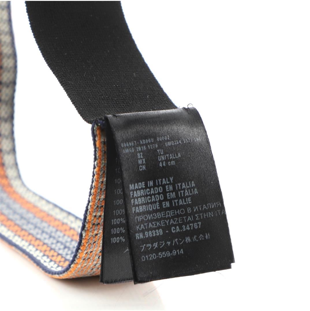 One Prada Headband Woven Fabric Blue, Multicolor, Orange. Item is sold AS-IS. All available information is listed in the description and shown in the photo. Prada Headband Woven Fabric Blue, Multicolor, Orange Condition Details: Light wear and pilling on exterior and in interior. Height None", Width None", Depth None", Strap Drop None