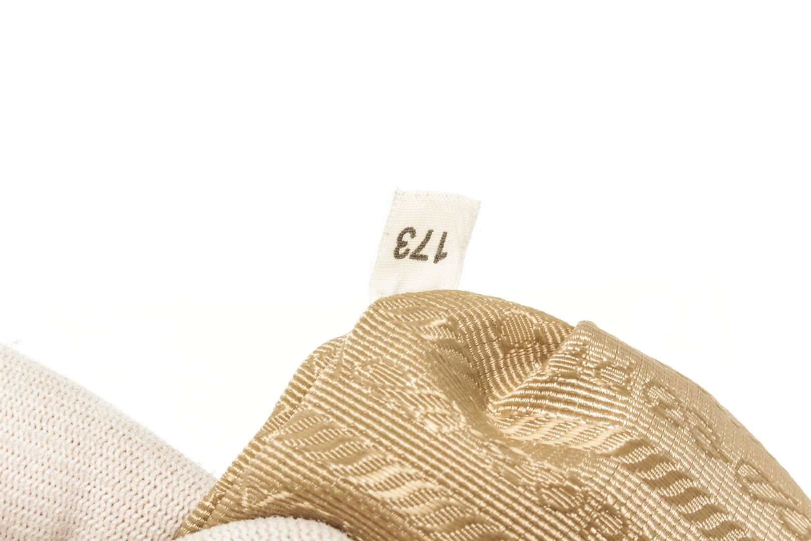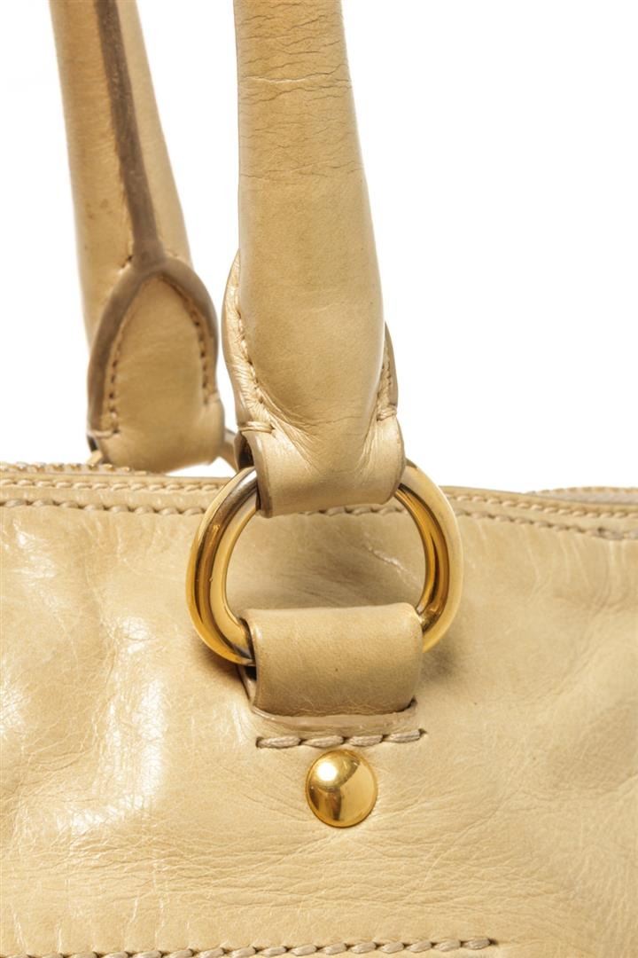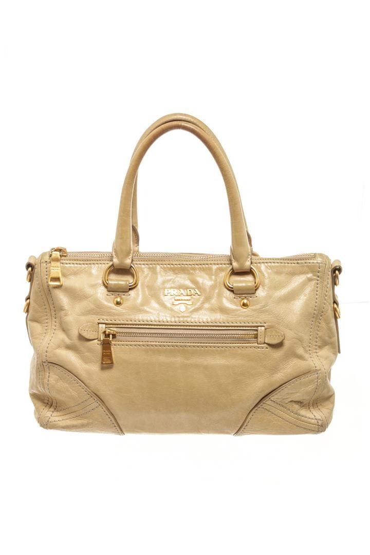 One Prada Light Yellow Beige Leather Shoulder Bag. Item is sold AS-IS. All available information is listed in the description and shown in the photo. Prada Light Yellow Beige Leather Shoulder Bag with top handle, exterior zipper pocket, Prada fabric lining, interior zipper pocket, gold tone hardware and zipper closure. There is a pen mark on the leather and the lining is heavily worn. Please refer to photos. Height:9.36 in, Length:15.8 in, Depth:5.85 in / 23.77 x 40.13 x 14.85 CM