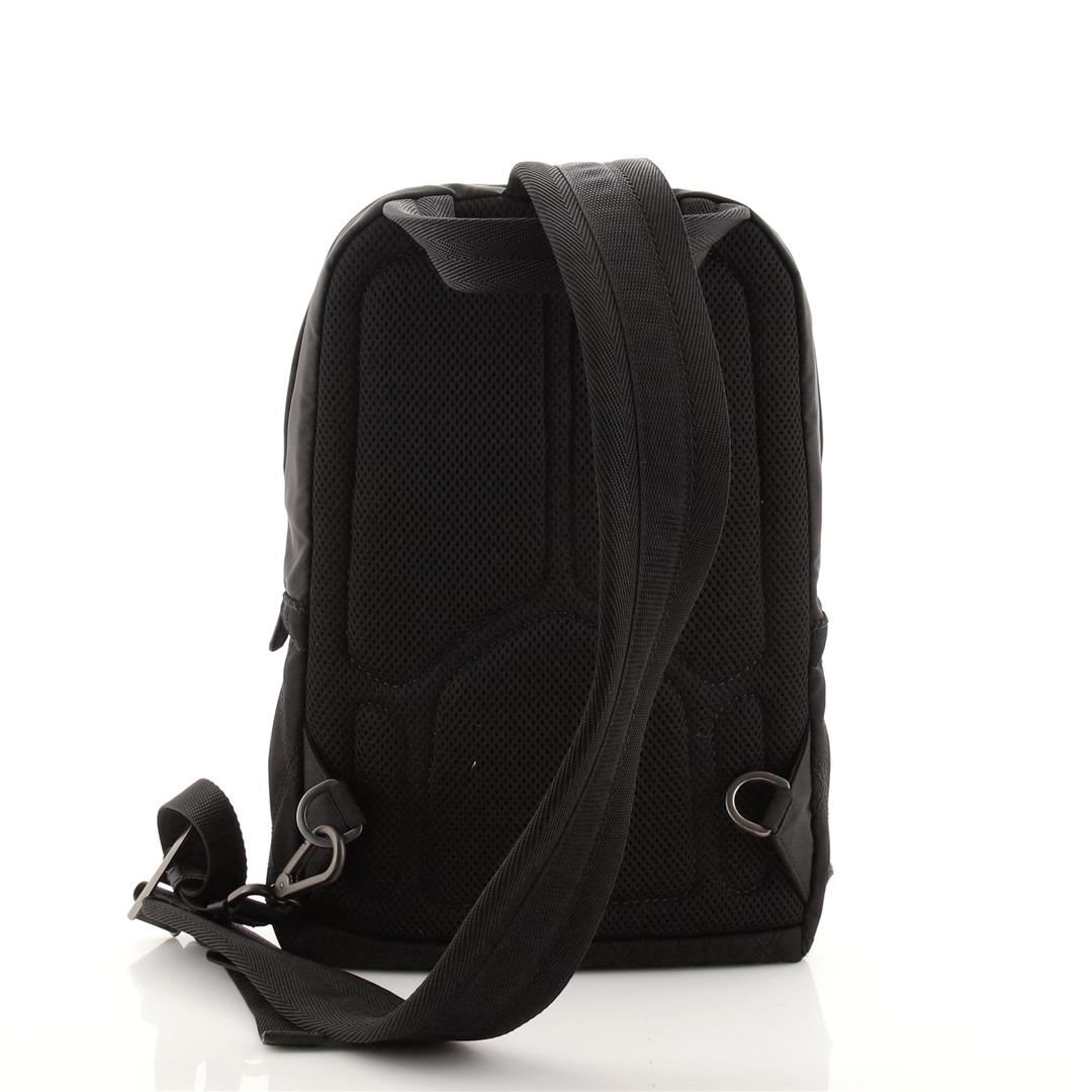 One Prada Logo Patch Buckle Sling Bag Quilted Tessuto with Saffiano Leather. Item is sold AS-IS. All available information is listed in the description and shown in the photo. Prada Logo Patch Buckle Sling Bag Quilted Tessuto with Saffiano Leather. Creasing and minor wear on exterior, scratches on hardware.