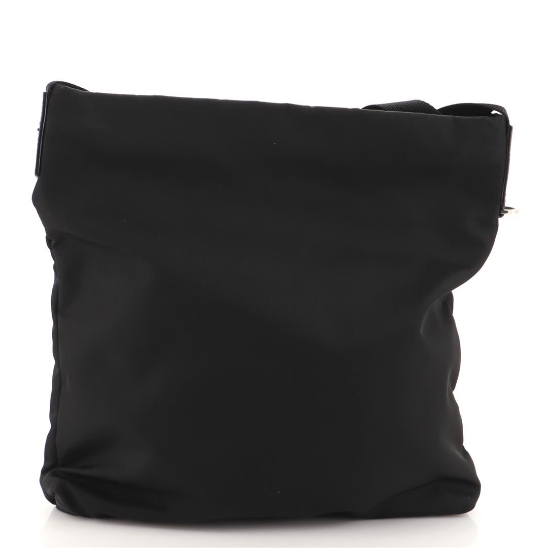 Prada Logo Patch Front Zip Messenger Bag Tessuto Medium. All available information is listed in the description and shown in the photos. Prada Logo Patch Front Zip Messenger Bag Tessuto Medium. Minor odor in interior. Wear, marks and creasing on exterior and in interior, scratches on hardware.