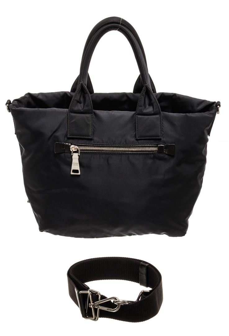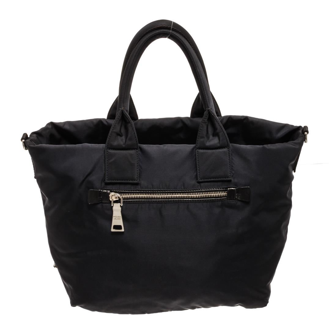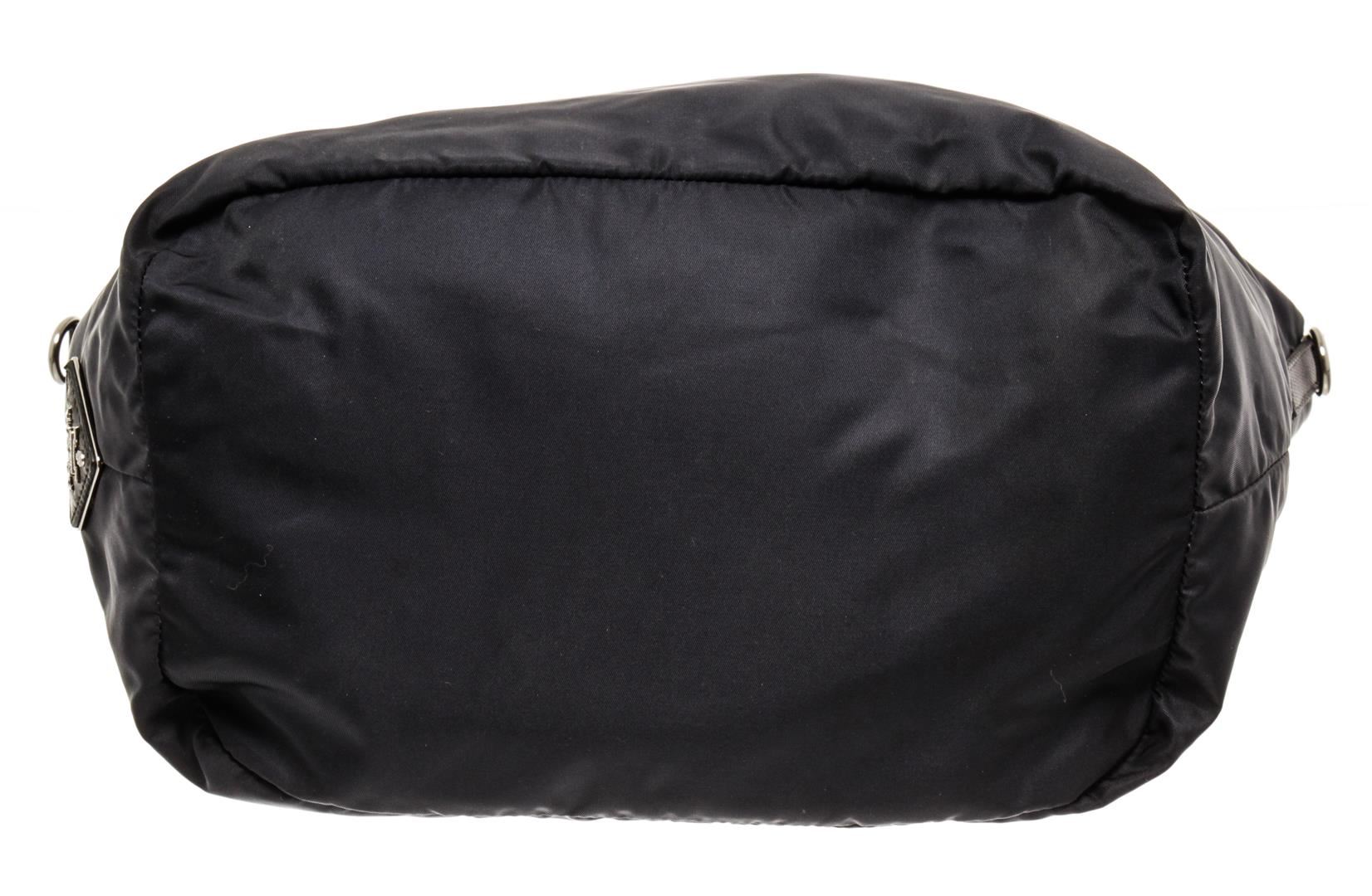 One Prada Test Double Handbag. Item is sold AS-IS. All available information is listed in the description and shown in the photo. Prada test double handbag with detachable and adjustable strap, top handles, silver-toned hardware, black nylon lining, one interior zip pocket.