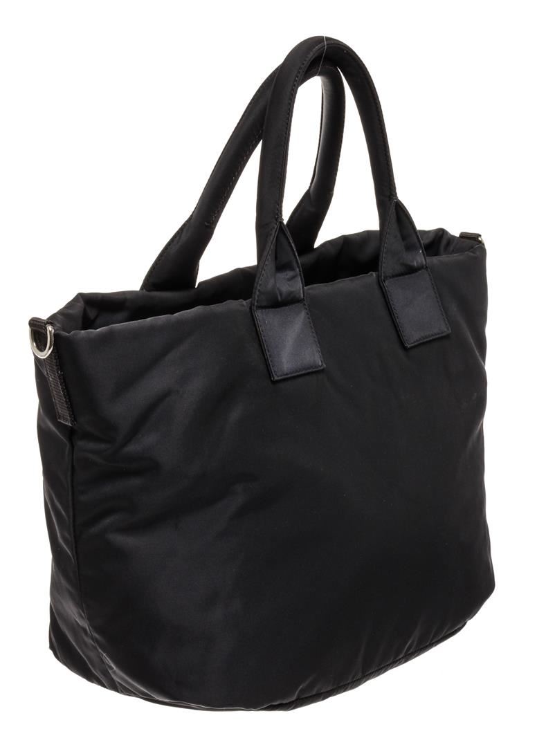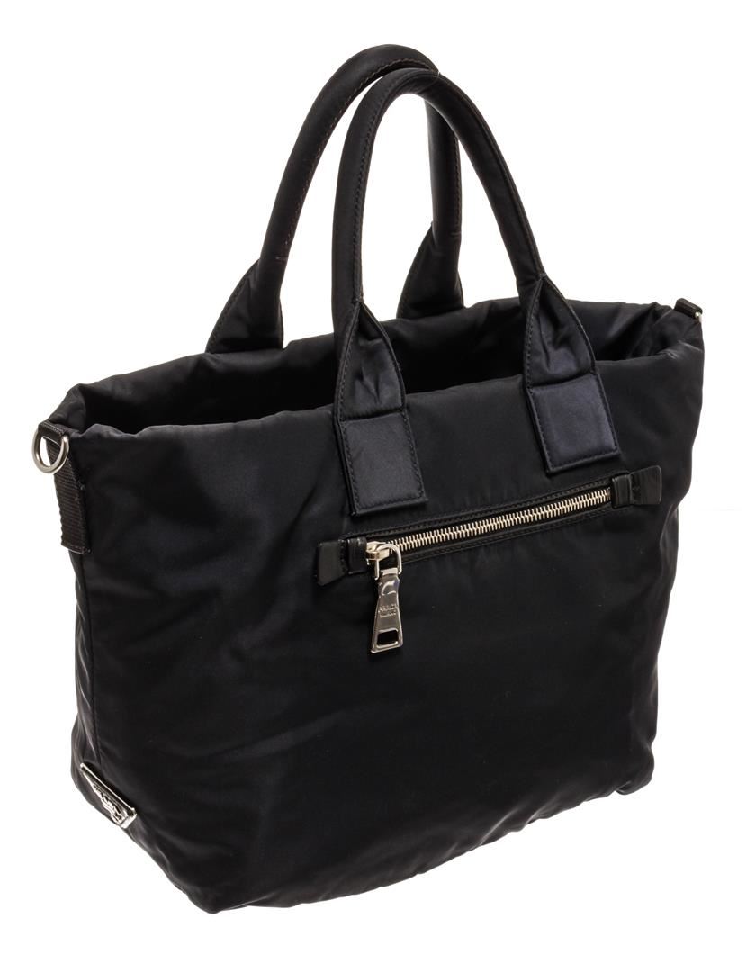One Prada Test Double Handbag. Item is sold AS-IS. All available information is listed in the description and shown in the photo. Prada test double handbag with detachable and adjustable strap, top handles, silver-toned hardware, black nylon lining, one interior zip pocket.