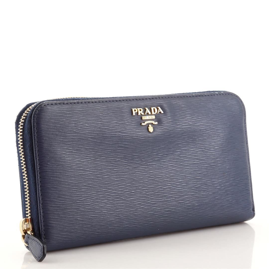 One Prada Zip Around Wallet Vitello Move Long. Item is sold AS-IS. All available information is listed in the description and shown in the photo. Prada Zip Around Wallet Vitello Move Long. Wear on exterior, moderate wear on exterior edges, pilling on zipper tape. Cracking, splitting and fraying on zipper pull wax edges, heavy wear and indentations in interior. Darkening and stains in interior pocket, scratches, discoloration and tarnish on hardware.