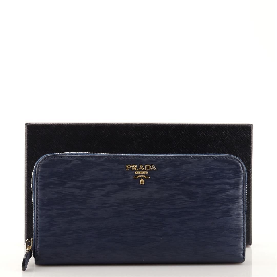 One Prada Zip Around Wallet Vitello Move Long. Item is sold AS-IS. All available information is listed in the description and shown in the photo. Prada Zip Around Wallet Vitello Move Long. Wear on exterior, moderate wear on exterior edges, pilling on zipper tape. Cracking, splitting and fraying on zipper pull wax edges, heavy wear and indentations in interior. Darkening and stains in interior pocket, scratches, discoloration and tarnish on hardware.