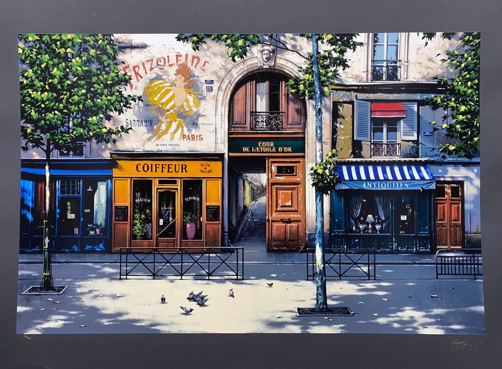 Pradzynski "Cour de l'Entoile d'Or" Hand Signed and Numbered Limited Edition Serigraph on Paper Dimensions: 26 x 38 Inches (Note: Edition number received may differ from photo)