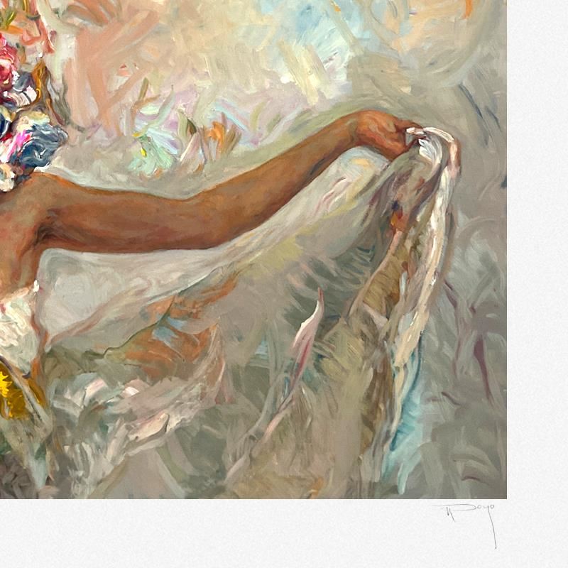 "Prima Luce" is a limited edition printer's proof on paper by Royo, numbered and hand signed by the artist. Includes Letter of Authenticity. Measures approx. 30" x 50" (border), 25" x 45" (image).