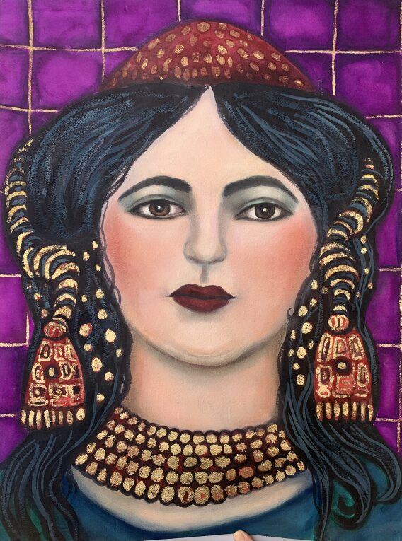A pastel & watercolor portrait of a beautiful Princess. Anonymous is not telling us more. 24x18" on deckled fine art paper.