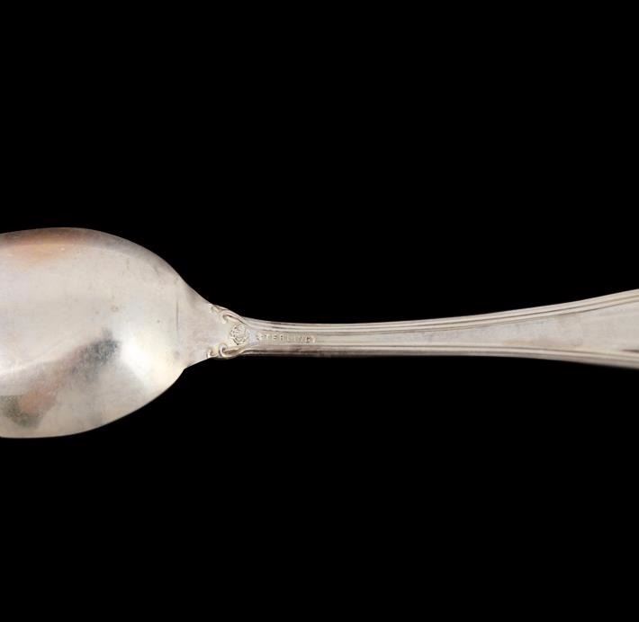 "Priscilla" pattern by Frank Smith circa 1918. This beautiful antique set consists of (6) dinner forks 7", and (6) teaspoons 5.75" all bare the single monogram initial "C" or "D" in Old English. Great estate condition.