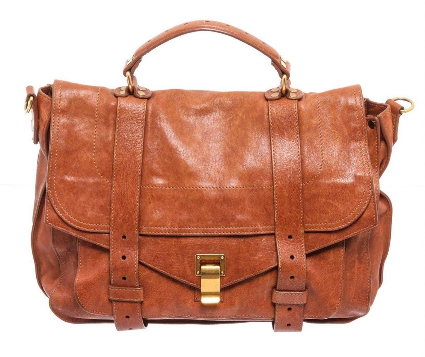 Proenza Brown Leather Schouler Messanger Bag. Proenza Brown Leather Schouler Messanger Bag with gold-tone hardware, flat handle & single adjustable shoulder strap, single exterior pocket, grosgrain lining & three interior pockets, pull-through closure.