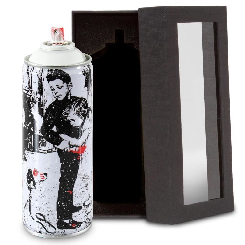 "Pup Art (White)" is a numbered limited edition hand painted spray can by Mr Brainwash from the 2020 Classic Spray Can Collection. Measures approximately 2.5" x 7.5".