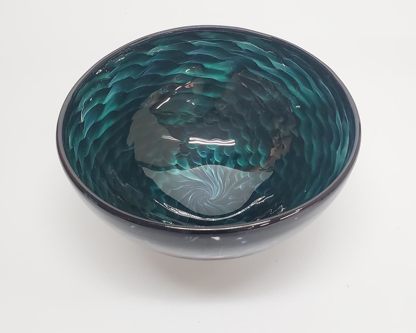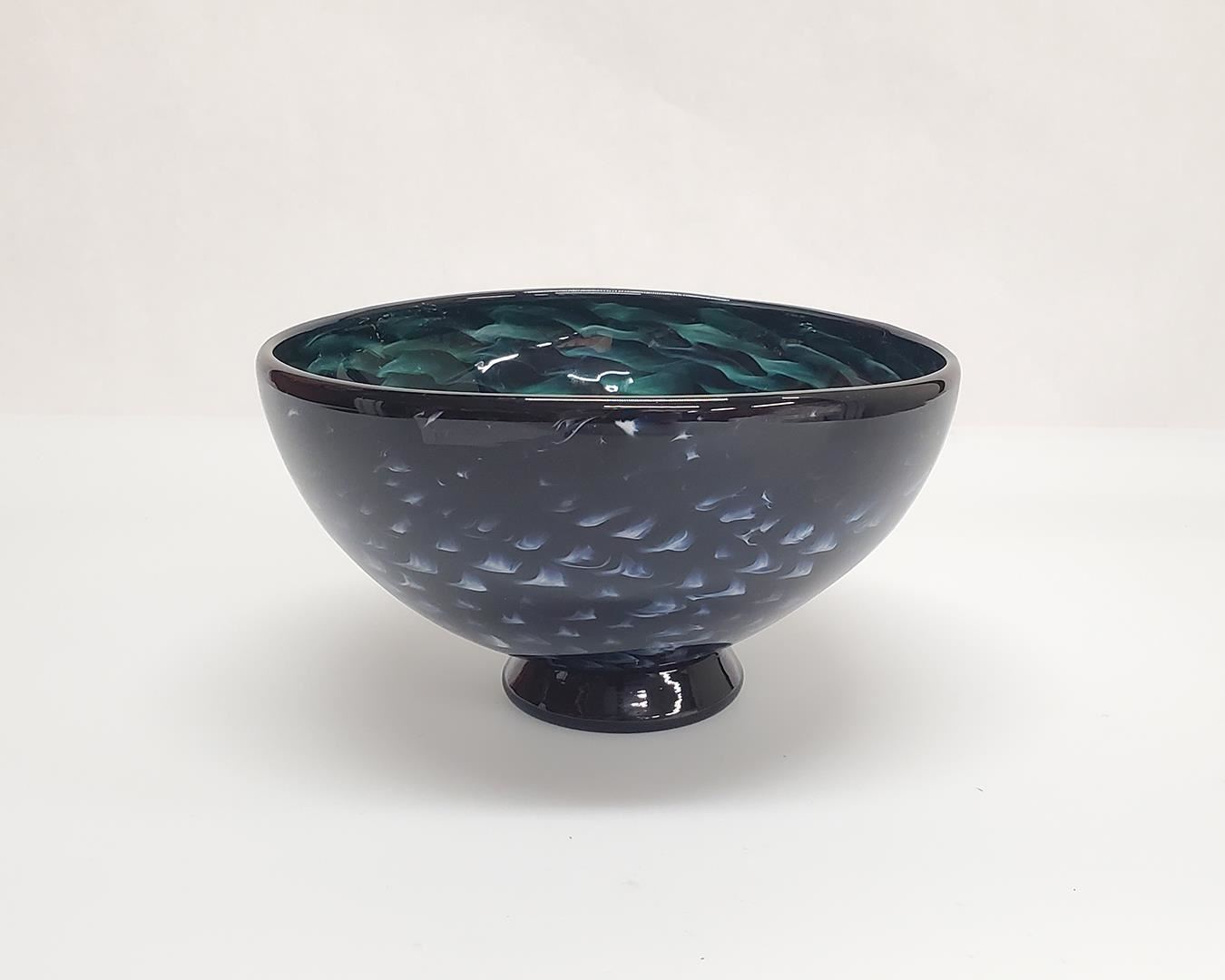 Bowl with purple exterior and green interior, this piece measures 7.25" diameter and 4" tall.