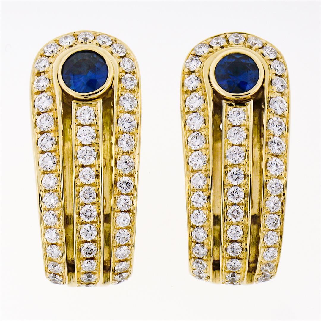 An estate solid 18k yellow gold cuff earrings by Di Modolo, featuring 2 round brilliant cut natural sapphires (0.80ctw), and 88 round brilliant cut natural diamonds (E/F - VVS1/VVS2 ; 1.10ctw). The earrings measure approximately 22.85x10mm and weigh a total of 11.67 grams.