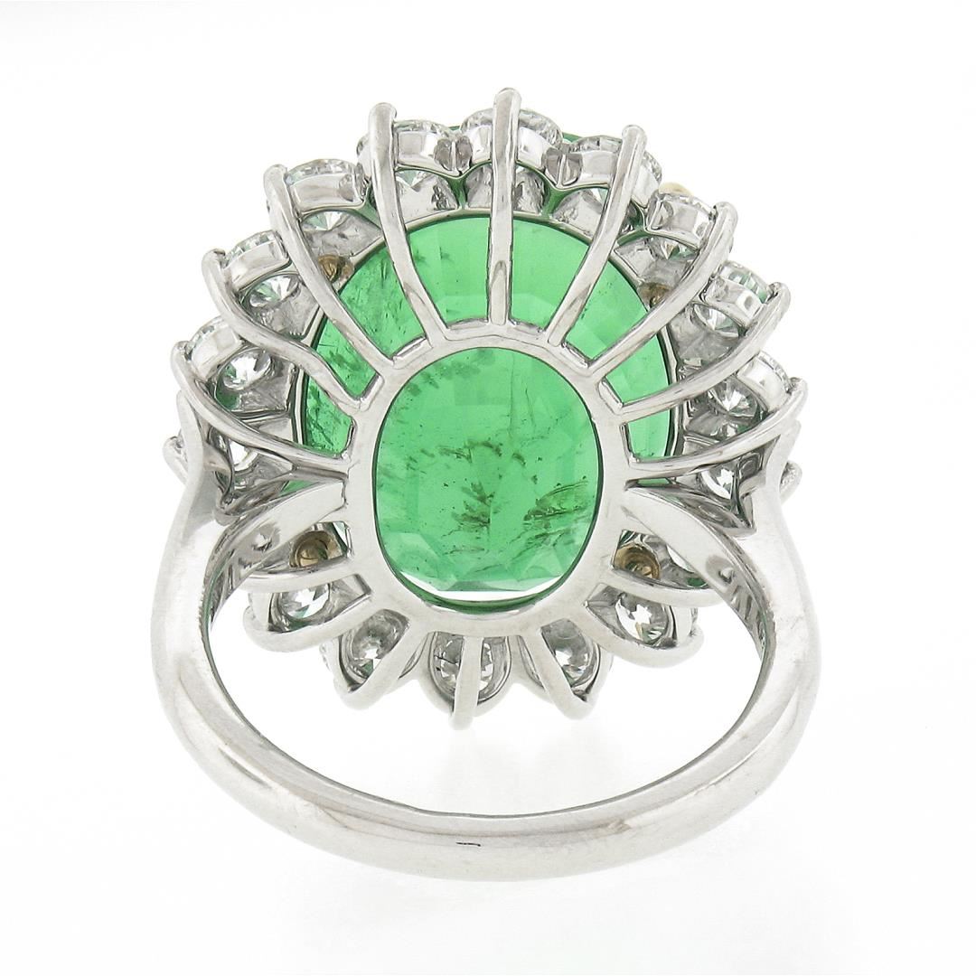 A solid platinum & 18k yellow gold cocktail ring, with 1 AGL graded high quality oval cut natural emerald (14.64ct), and a halo of 18 round brilliant cut natural diamonds (E/F - VVS2/VS1 ; 2.70ctw). The ring is size 7.0, weighs a total of 12.67 grams, and measures 25.85mm wide. Comes with all original relevant certifications.