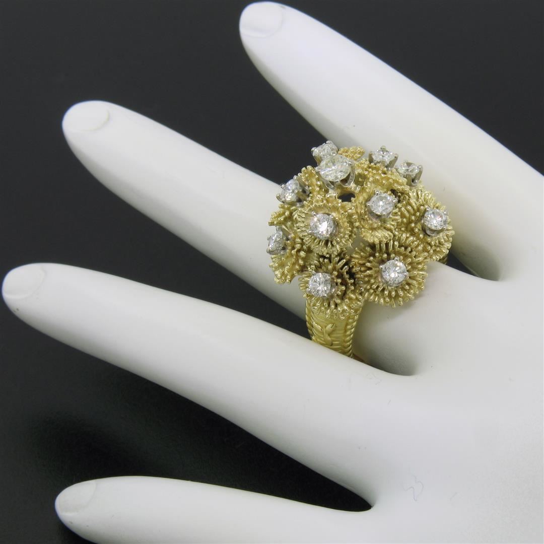 QUALITY Vintage 18K Gold 1.30 ctw Diamond Tiered Textured Cluster Cocktail Ring