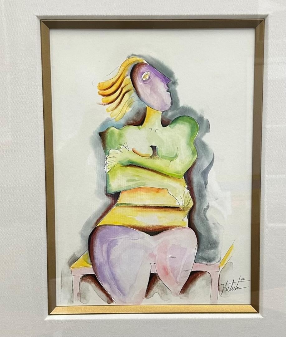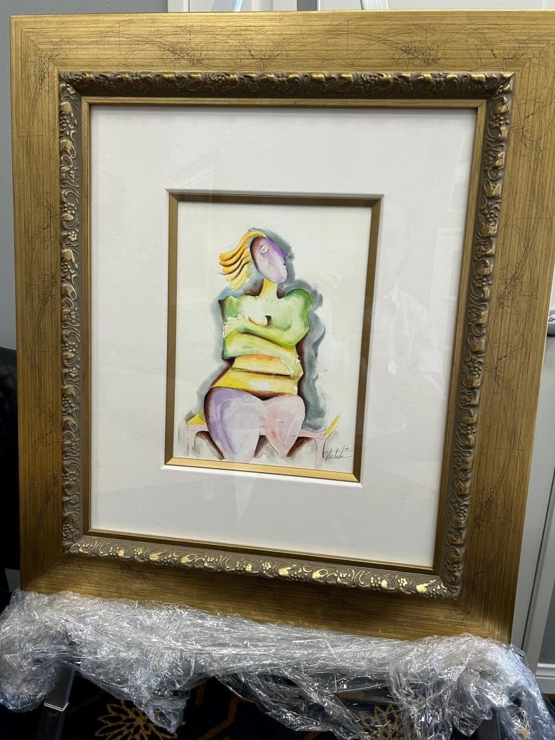 An original 2006 Nechita 13x10" guoache on paper framed with linen matting, plexi. 28.75x25.25"