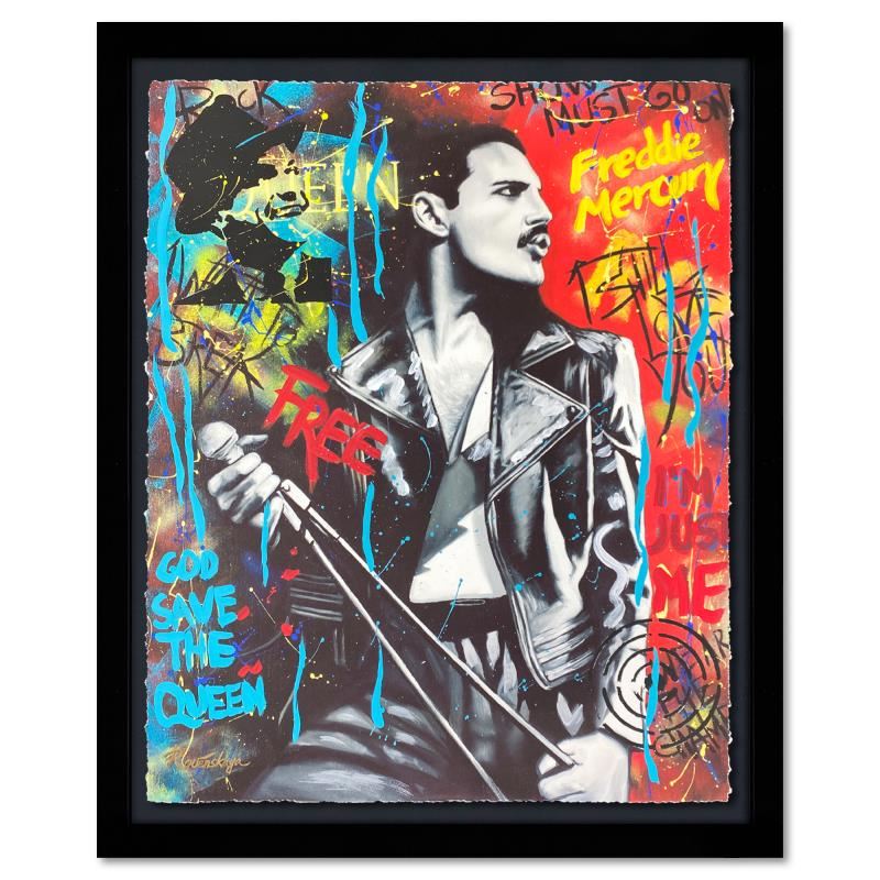 "Queen" is a one-of-a-kind mixed media on deckle edge paper by Nastya Rovenskaya, Hand signed by the artist. This piece comes floating in a custom frame. Includes Letter of Authenticity. Measures approximately 34" x 28" (framed), 30" x 24" (image).