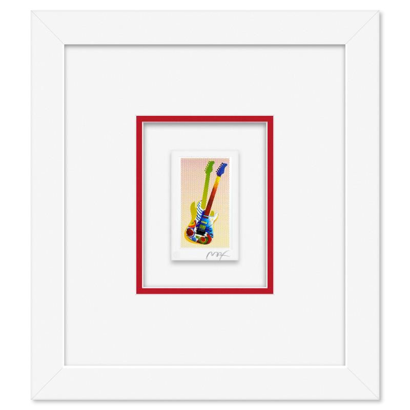"R & R Guitar I," is a limited edition lithograph on paper by Peter Max, numbered and hand signed by the artist. This piece comes framed. Includes Certificate of Authenticity from Peter Max Studios. Measures approx. 13" x 11.5" (frame), 4" x 2.5" (image).