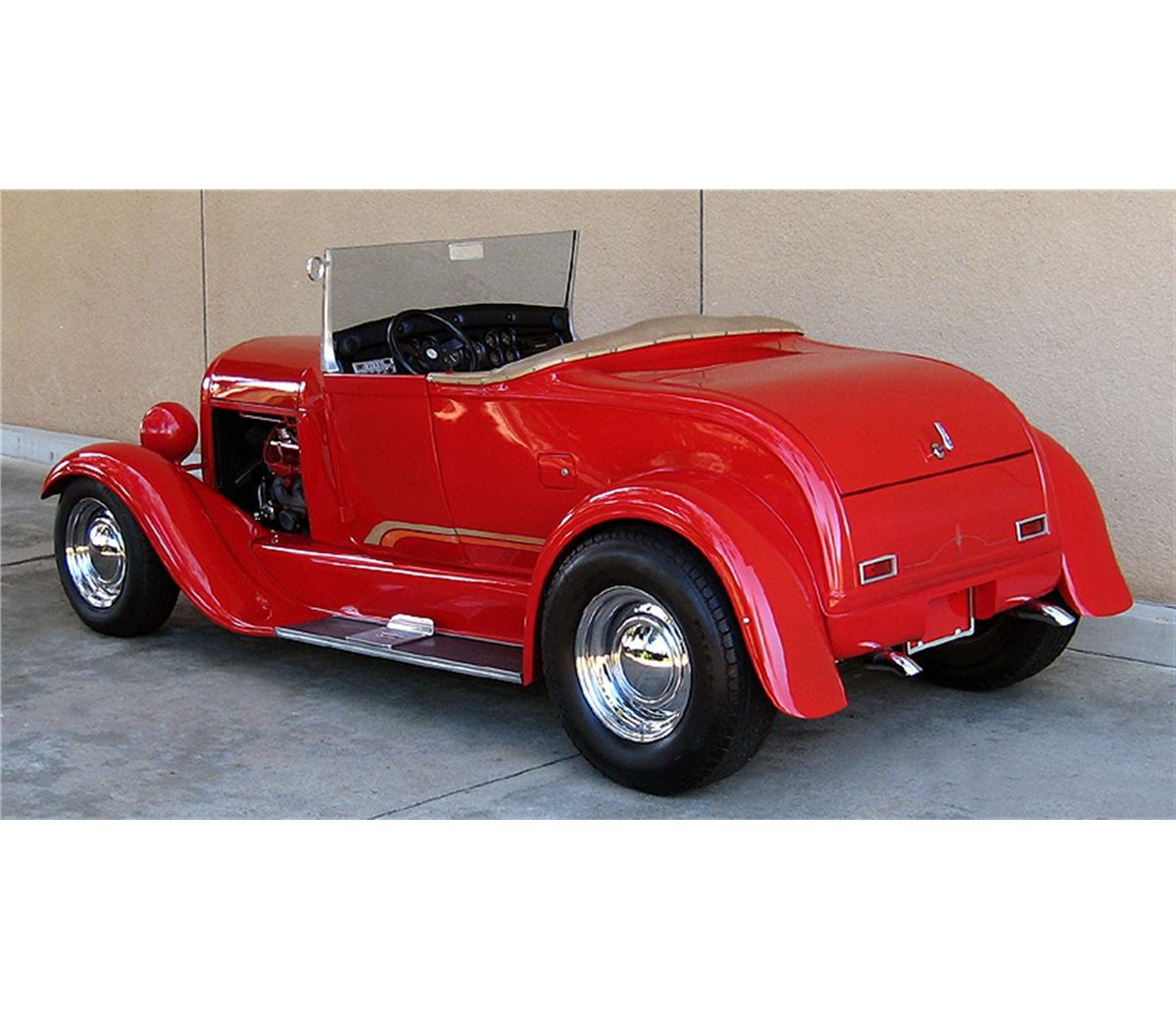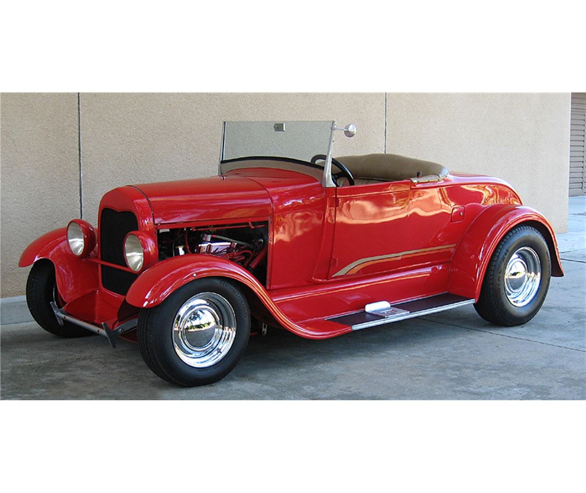 Awesome 1929 Ford Roadster! Great Driver! Full fendered glass body with working doors. 302 Ford V8 with automatic transmission. Easy rack & pinion steering that feels like power steering. Drop axle with drum brakes. Straight Body with super paint! Great sounding dual exhaust with glass packs out the tail end. The fully custom padded dash is loaded with a complete set of Stewart Warner gauges, CB radio, stereo, and speakers! Nice upholstery. Chrome Smoothie wheels with big and little tires. Billet aluminum windshield, frame, posts, mirrors, and door handles. This is a very dependable street rod! Incredibly fun to drive with quick acceleration, responsive handling, and smooth suspension! Holley carburetor, Street Dominator intake, chrome alternator, chrome radiator overflow, and dress up kit. Recessed firewall. Tilt locking hood top! This street rod is very well engineered and thought-out. Turn signals are integrated into the front spreader bar. New aluminum street rod running board steps. Locking gas cap door. Finished trunk. Clever easy battery access designed through custom center section of the bench seat. 10 bolt Chevy rear end. Mr. Roadster pedals. Chrome fire extinguisher and custom padded steering wheel! B&M floor shifter. Graphics. Remote oil filter! Also included: fold down TOP, hood sides painted to match, leather bra, headlight covers, and etched glass wind wings! Needs nothing! Great looking with the correct stance! A truly fun turn-key driver that is ready for cruise nights now!
