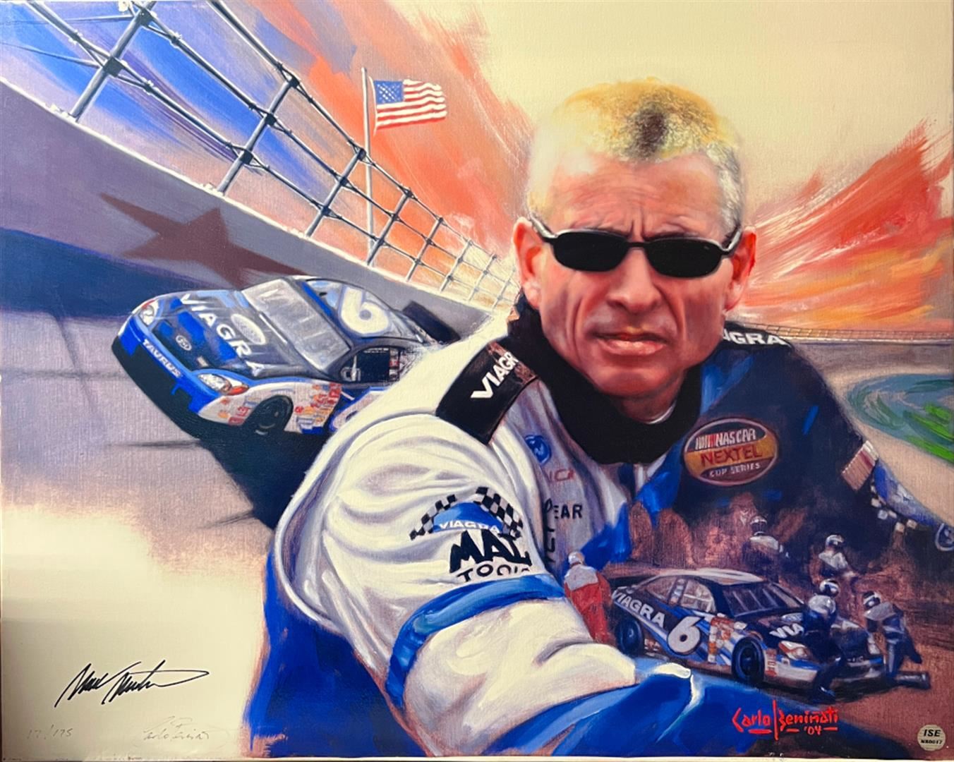 Race Car Legend Mark Martin by Beninati, Carlo. Limited Hand Signed Giclee on canvas Stretched. Dimensions: 22.5 x 28. Excellent Condition.