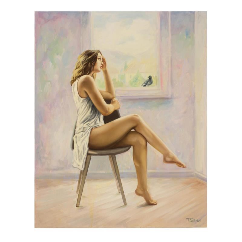 "Raffaella" is a limited edition giclee on canvas by Taras Sidan. Numbered and hand signed, this piece is accompanied by a letter of authenticity. Measures approximately 30" x 24".
