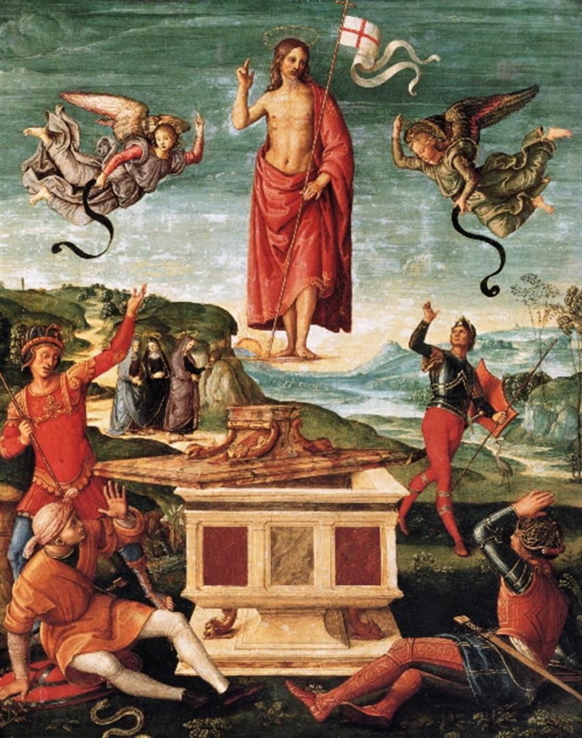 Artist: Raphael - Title: Resurrection of Christ - Medium: Fine Art Giclee on Canvas - Image Size: Approximately 32 inches x 25.25 inches - Unframed on Unstretched Canvas - Biography: Raffaello Sanzio da Urbino (c. March 28 or April 6, 1483 - April 6, 1520), also known as Raphael, was an Italian painter and architect of the High Renaissance. His work is admired for its clarity of form, ease of composition, and visual achievement of the Neoplatonic ideal of human grandeur. Together with Michelangelo and Leonardo da Vinci, he forms the traditional trinity of great masters of that period.