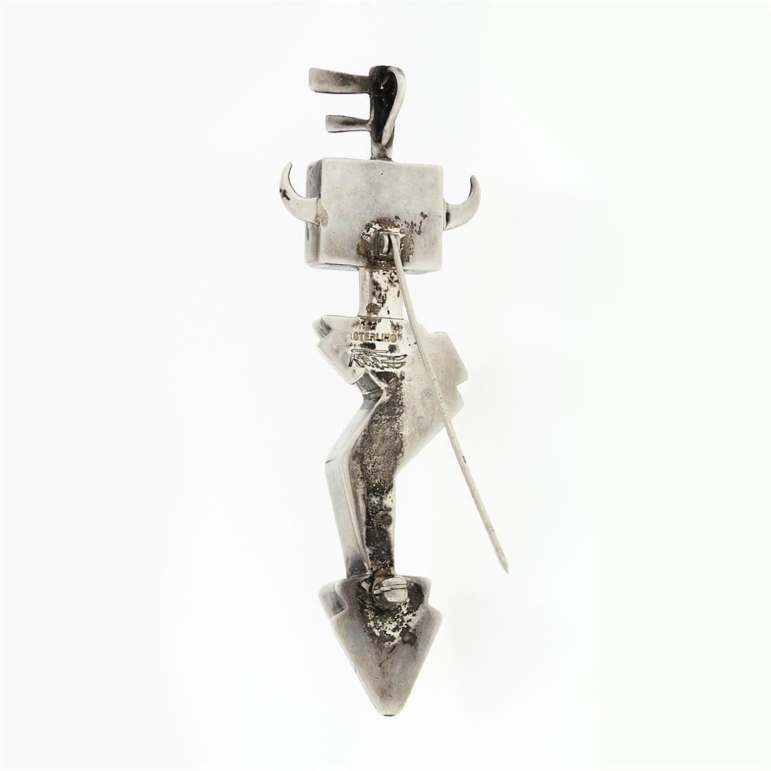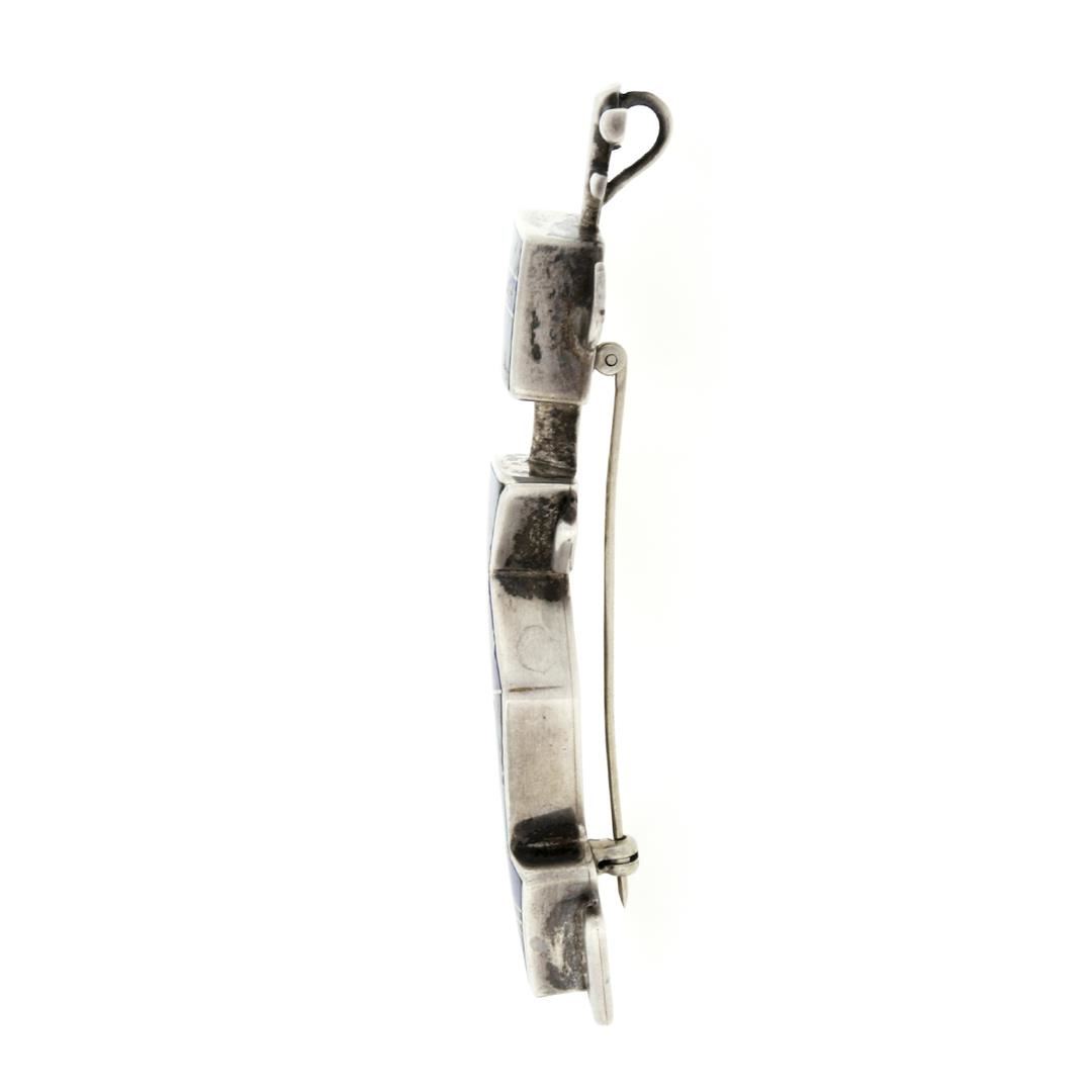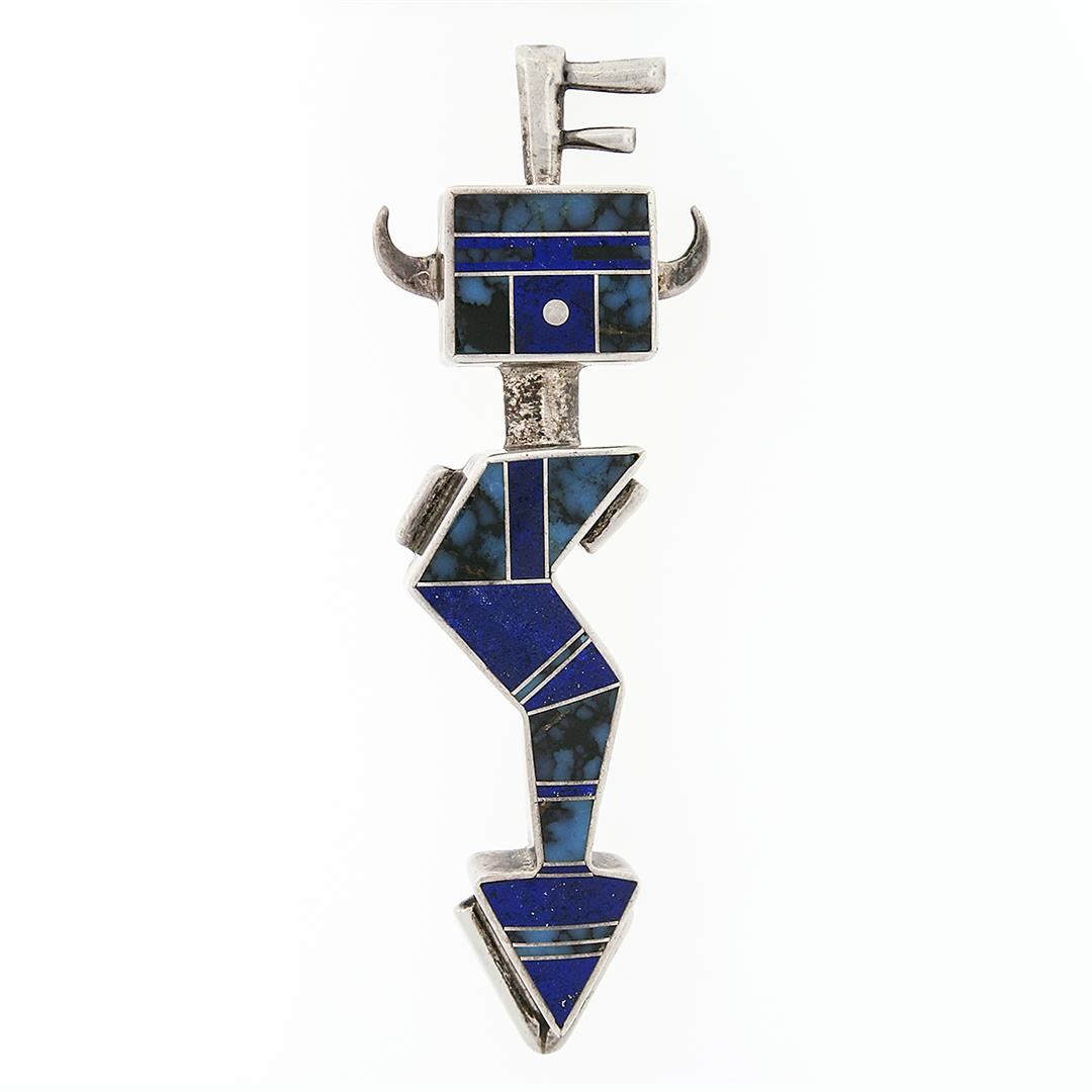 A Ray Tracey navajo sterling silver pendant brooch, with custom cut natural lapis & turquoise. Measures 83.13x27.64mm and weighs a total of 25.16 grams.