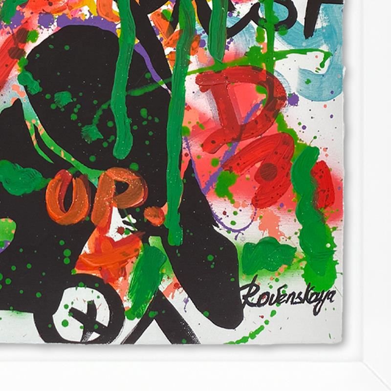 "Ready To Fight" is a one-of-a-kind mixed media on deckle edge paper by Nastya Rovenskaya, Hand signed by the artist. This piece comes floating in a custom frame. Includes Letter of Authenticity. Measures approximately 24" x 28" (framed), 20" x 24" (image).