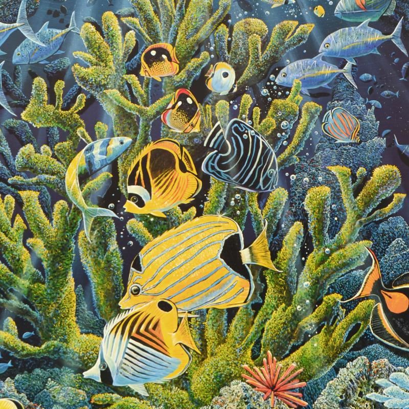 "Reawakening the Sea" is a limited edition mixed media on paper by Robert Lyn Nelson, numbered and hand signed by the artist. Includes Certificate of Authenticity. Measures approx. 25" x 46" (border), 21.5" x 38" (image).