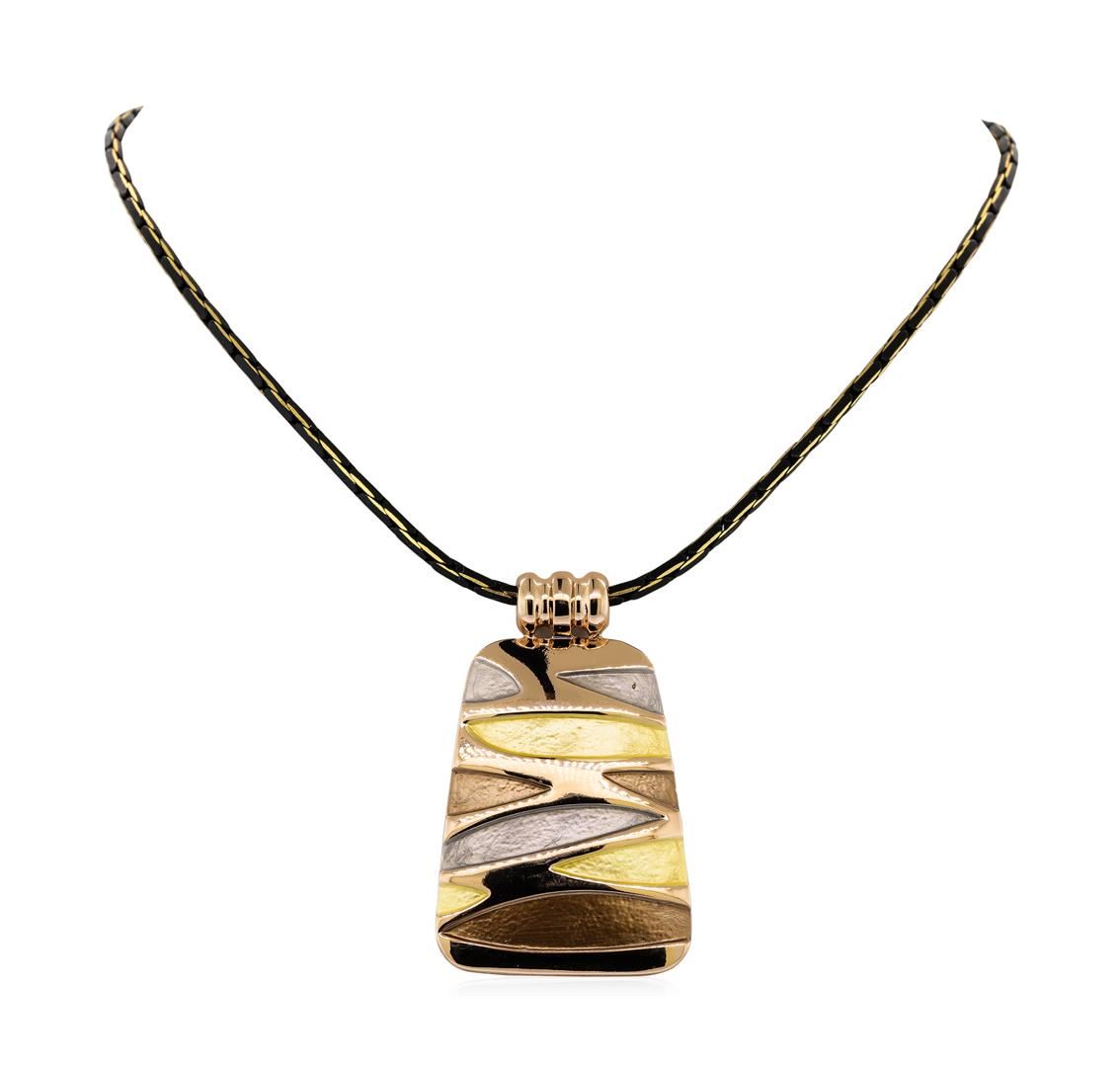 High end designer jewelry. Rectangle Pendant Chain Necklace - Rose Gold Plated. Rose Gld Plated/3" Ext Clasp. Multi/ Gold. 16inches. Total Weight: 27.7 grams.