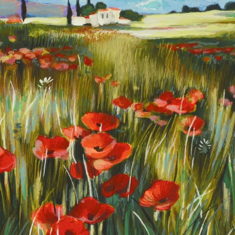 "Red Meadow" is a limited edition serigraph on paper, numbered and hand signed by Yuri Dupond. Includes Certificate of Authenticity. Measures approx. 13.5" x 11" (border), 12" x 9.5" (image).
