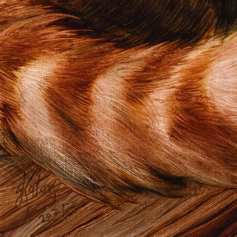 "Red Panda" is an original oil painting on stretched canvas by Martin Katon, hand signed by the artist. Includes Letter of Authenticity. Measures approx. 20" x 24" (image).