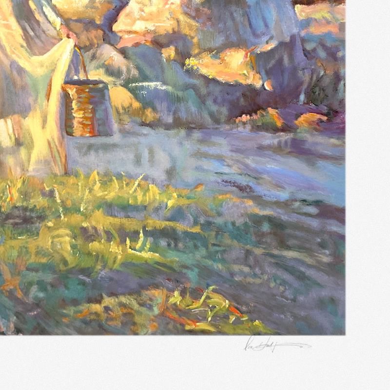 "Reflections at Dawn" is a limited edition printer's proof serigraph on paper by Don Hatfield, numbered and hand signed by the artist. Includes Letter of Authenticity. Measures approx. 30.5" x 31" (border), 25" x 26" (image).