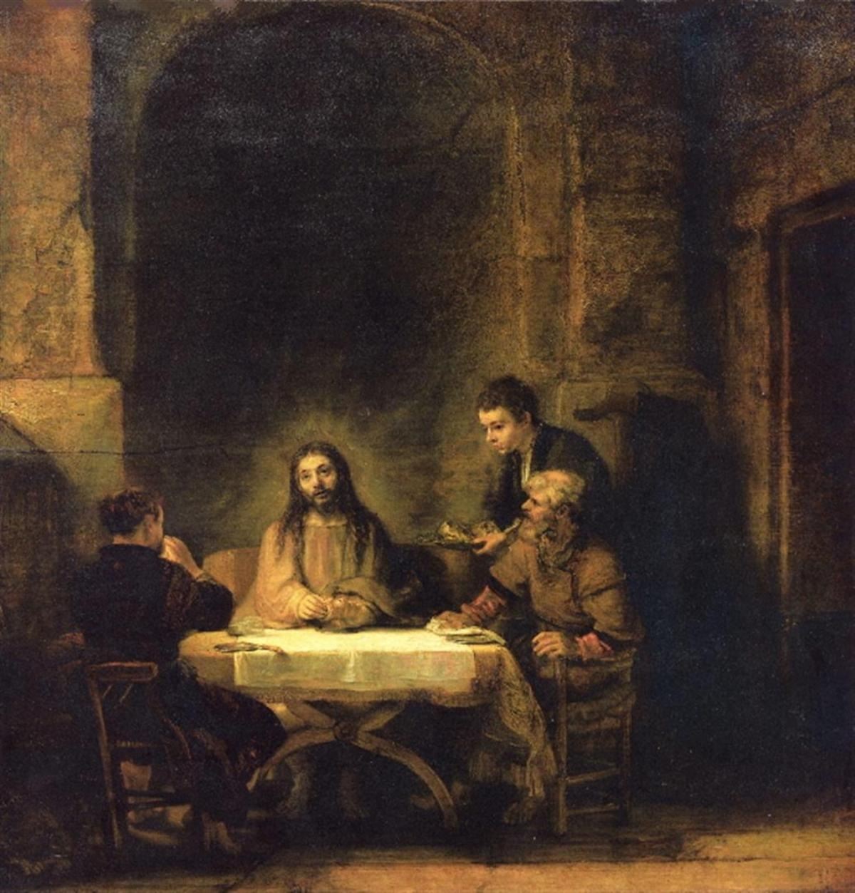 Artist: Rembrandt - Title: Christ in Emmaus [2] - Medium: Fine Art Giclee on Canvas - Image Size: Approximately 20 inches x 19.25 inches - Unframed on Unstretched Canvas - Biography: Rembrandt Harmenszoon van Rijn (c.July 1606 - October 1669) was a Dutch draughtsman, painter, and printmaker. An innovative and prolific master in three media, he is generally considered one of the greatest visual artists in the history of art and the most important in Dutch art history. Unlike most Dutch masters of the 17th century, Rembrandt's works depict a wide range of style and subject matter, from portraits and self-portraits to landscapes, genre scenes, allegorical and historical scenes, and biblical and mythological themes as well as animal studies. His contributions to art came in a period of great wealth and cultural achievement that historians call the Dutch Golden Age, when Dutch art (especially Dutch painting), although in many ways antithetical to the Baroque style that dominated Europe, was extremely prolific and innovative and gave rise to important new genres. Like many artists of the Dutch Golden Age, such as Jan Vermeer of Delft, Rembrandt was also an avid art collector and dealer.