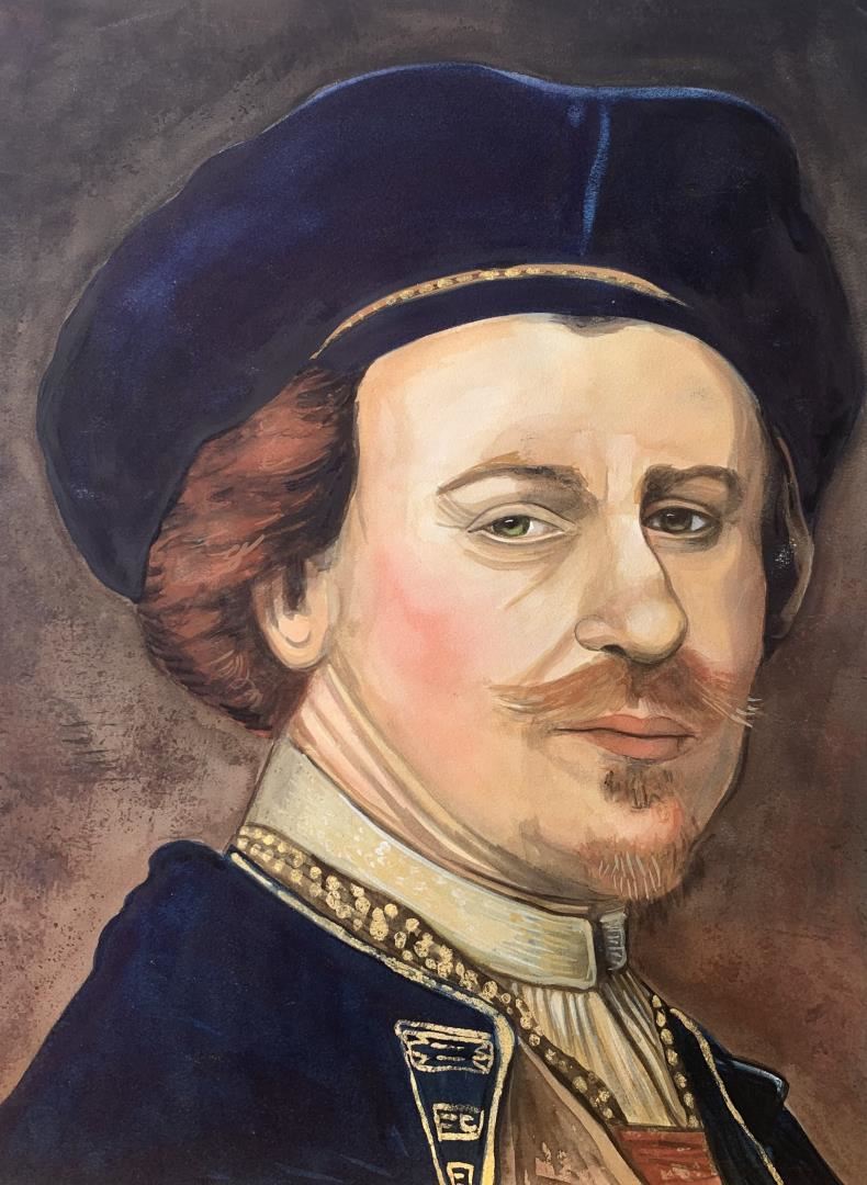A pastel & watercolor portrait of rembrandt, the 17th Century Master painter & inspiration to generations of artists. 24x18" on deckled fine art paper, by Anonymous